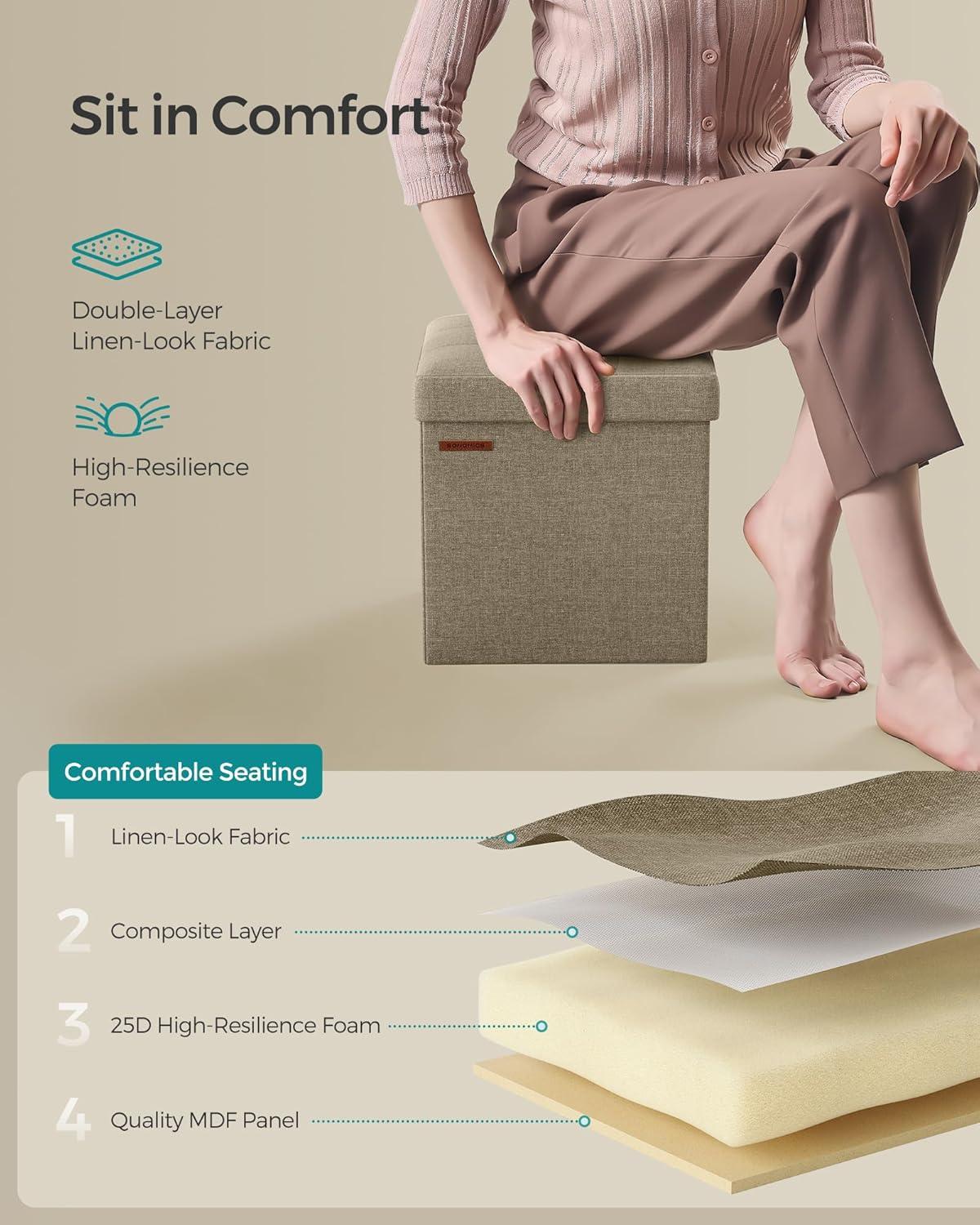 [Comfortable Seating] Filled with high-density foam and covered in linen-look fabric, this storage bench provides a soft, supportive, and breathable seat for optimal comfort