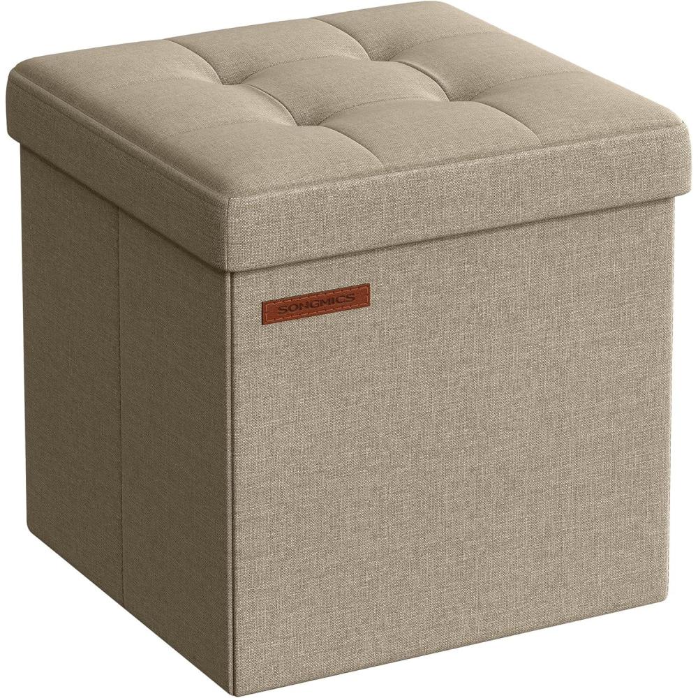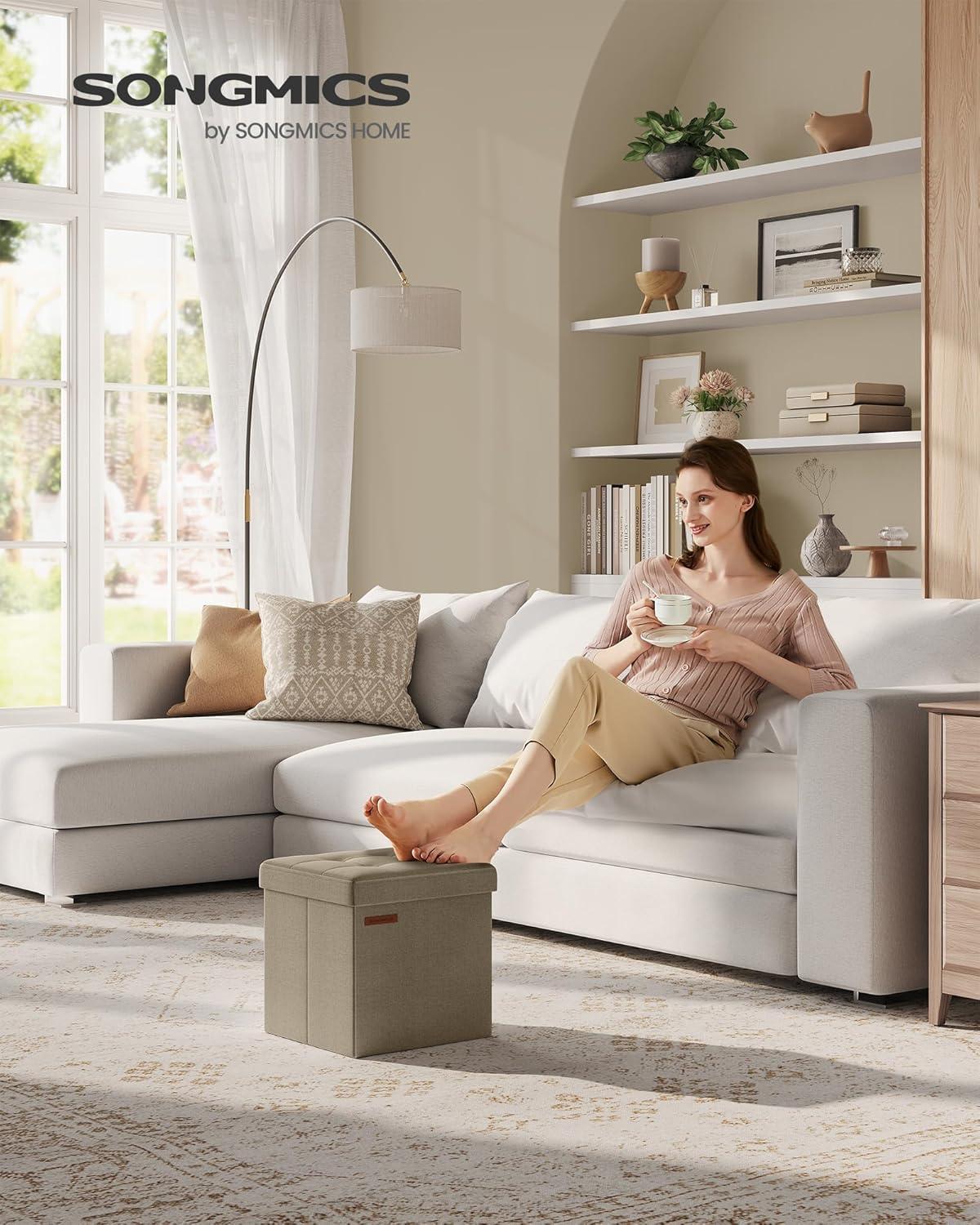 SONGMICS 11.8 Inches Small Folding Storage Ottoman Cube, Storage Footrest, Foot Rest Stool, for Living Room, Bedroom, Dorm, Dark Gray ULSF028G01(Cream White)