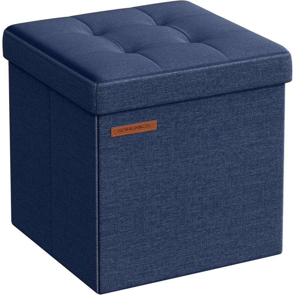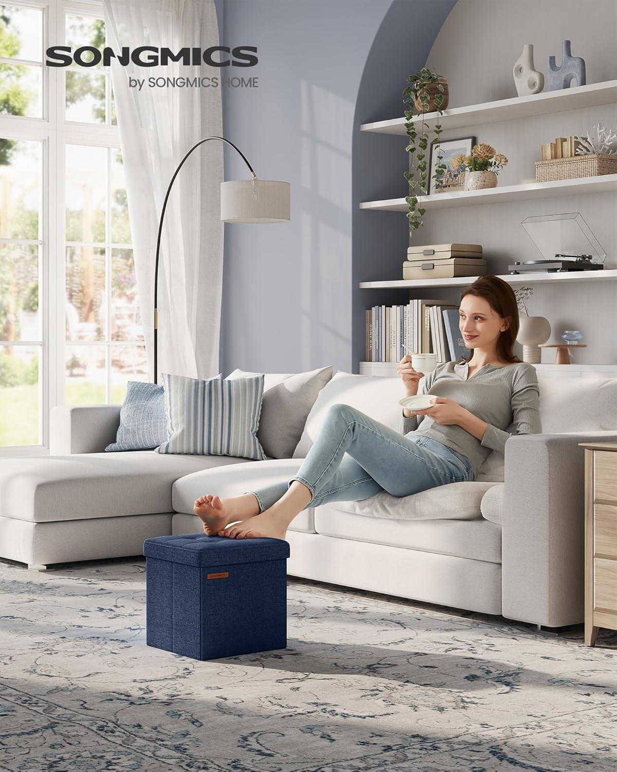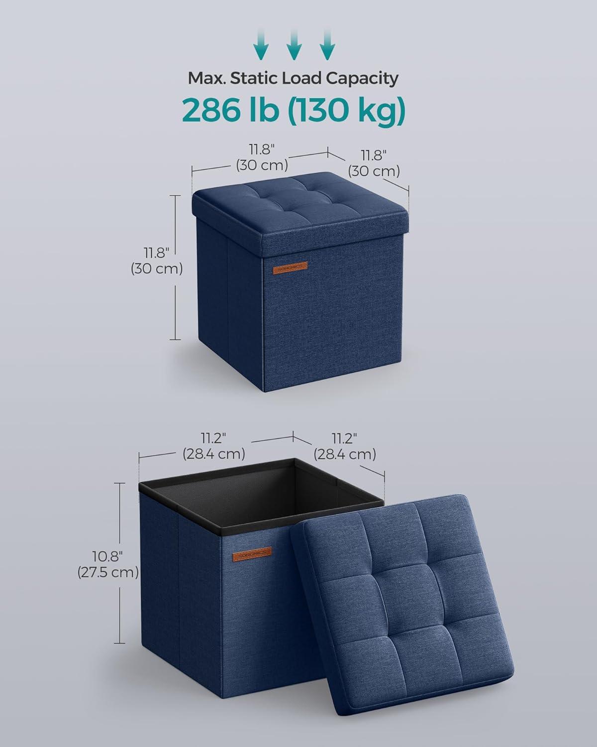 SONGMICS 11.8 Inches Small Folding Storage Ottoman Cube, Storage Footrest, Foot Rest Stool, for Living Room, Bedroom, Dorm, Dark Gray ULSF028G01(Midnight Blue)