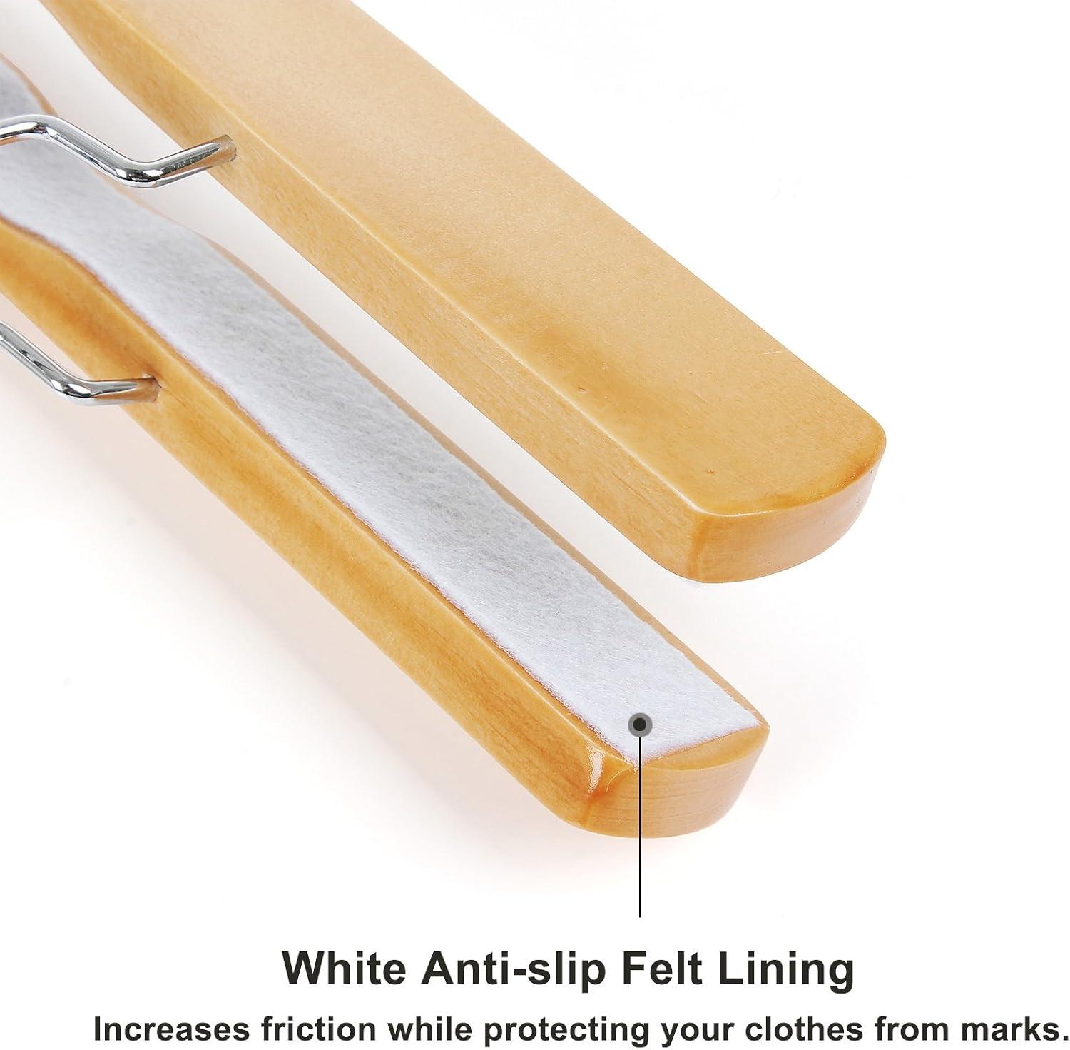 【NATURAL MATERIAL】 Crafted of premium wood, hand polished and a natural finish, these pants hangers are stylish and attractive when paired with either suit pants, trousers, slacks, jeans or skirts, and will last for years to come