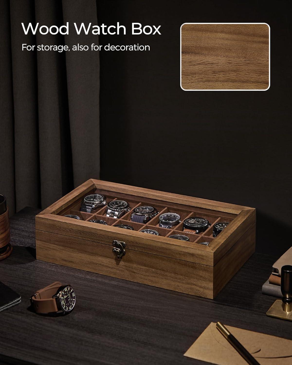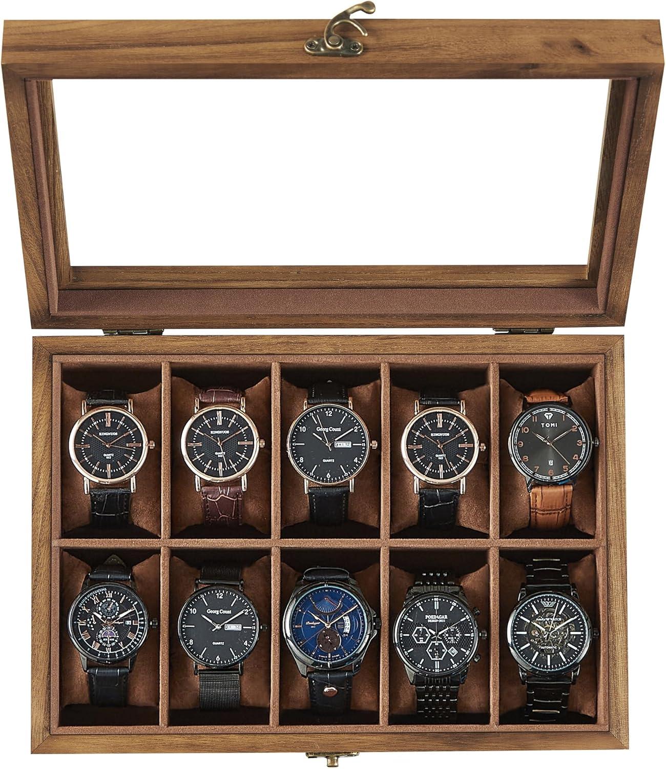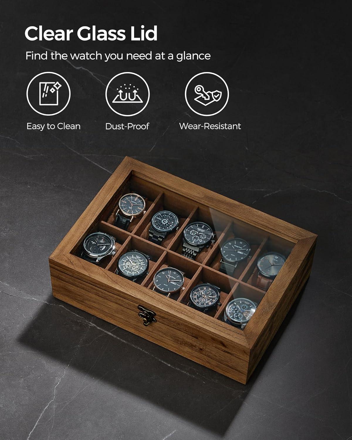 Style Your Watch Collections: Featuring rustic solid wood with rich grain and a large, clear glass lid, this watch holder not only meets your storage needs, but also accentuates your watch collection and adorns your space
