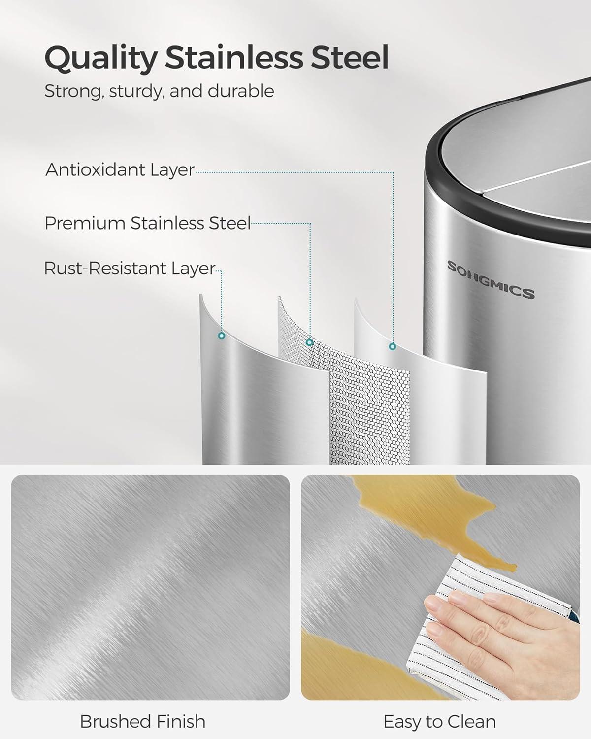 [Soft Close] This garbage can promote a peaceful kitchen environment with its stainless steel lid that closes silently, eliminating any loud noises or bangs