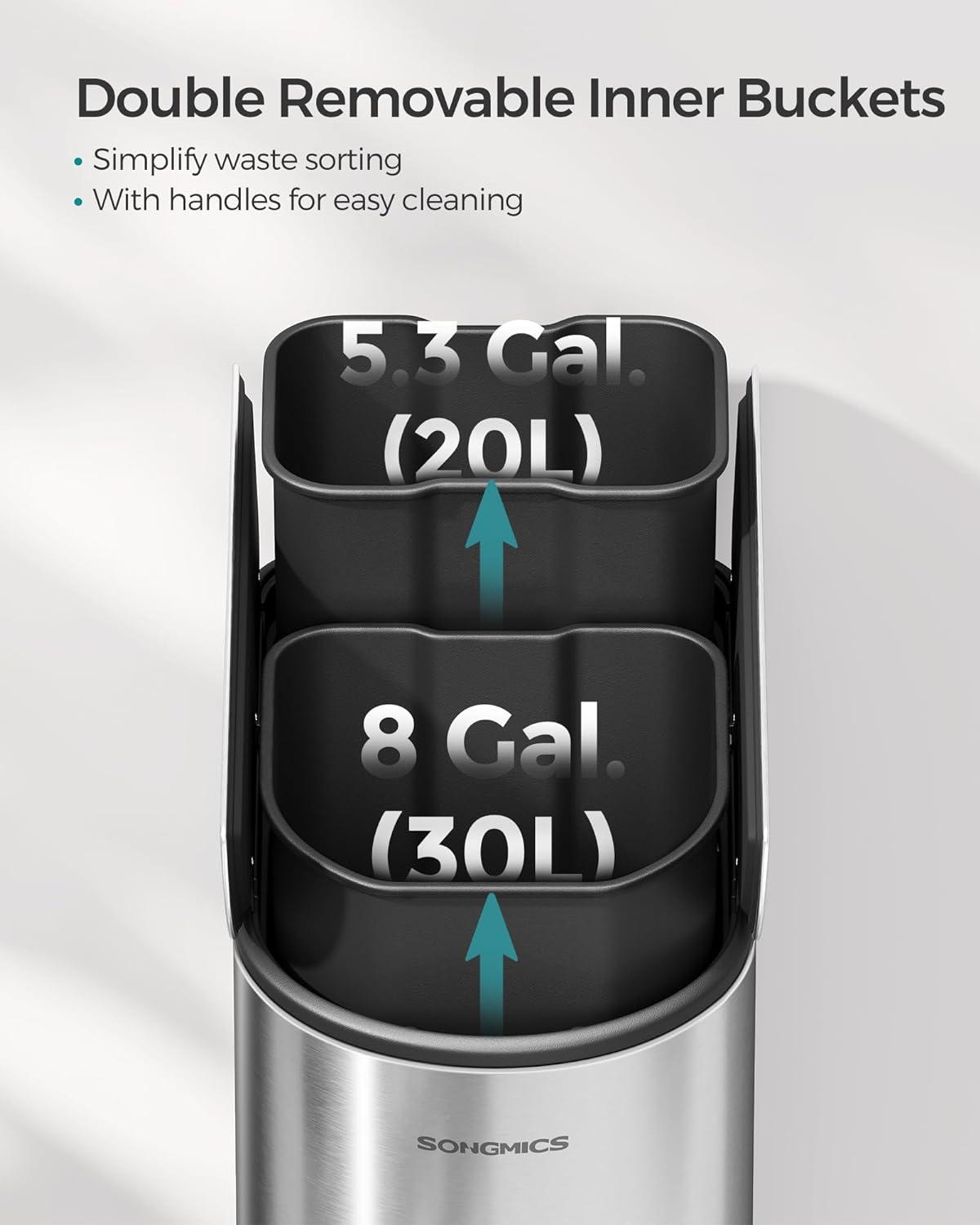 [Easy Bag Replacement] The 2 inner buckets with inner handles can be removed for easy cleaning and liner changes, and they also keep the bag securely in place and hidden from view