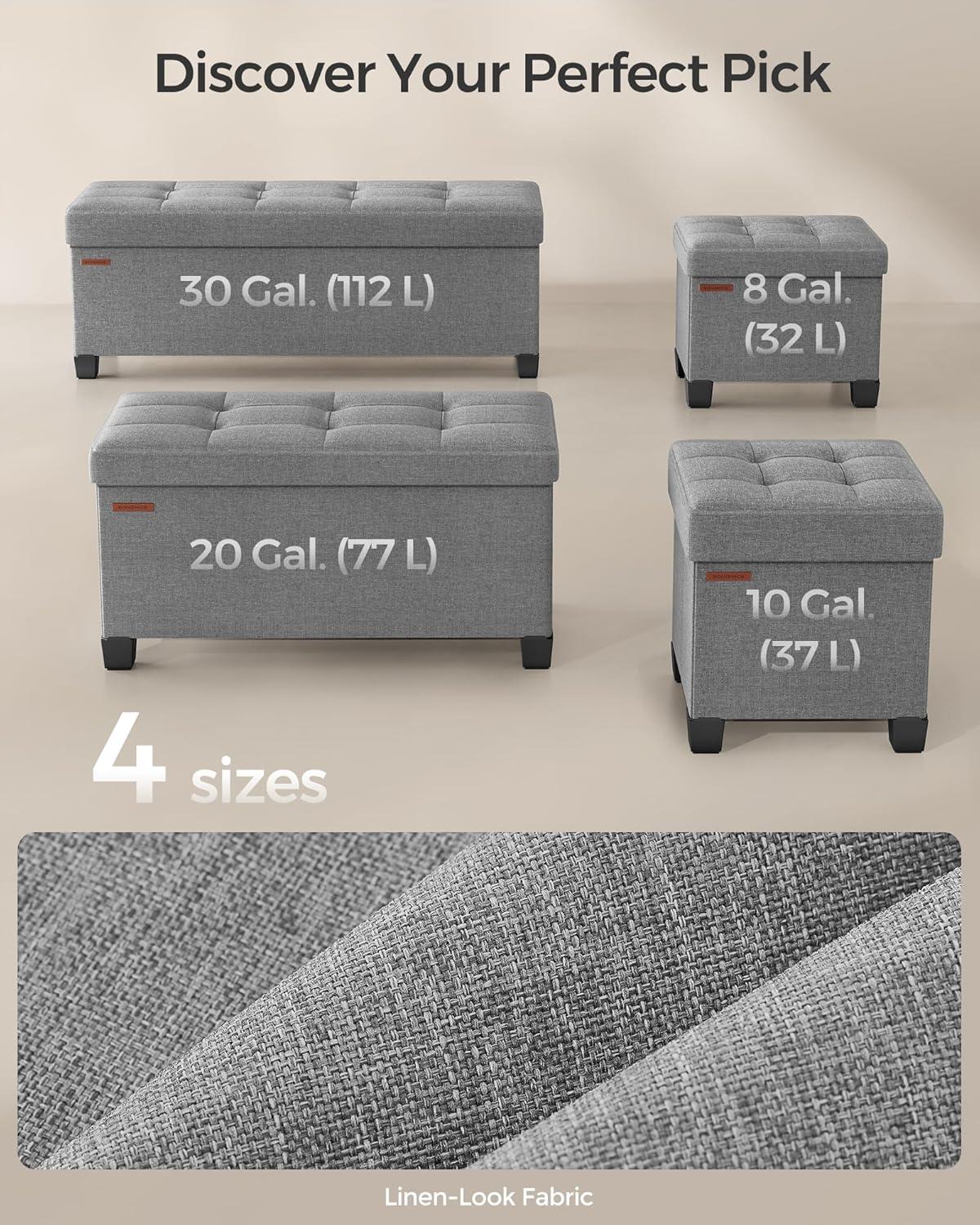 [Refined & Robust] Crafted from linen-look fabric, this storage ottoman features neat stitching and a refined aesthetic. Built with thick MDF panels and reinforced with metal corner guards on the lid, it has a max. static load capacity of 660 lb (300 kg)