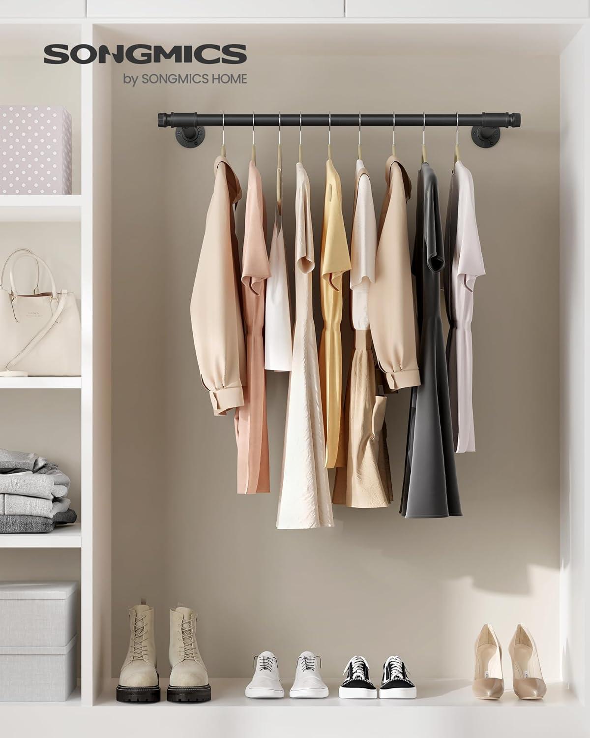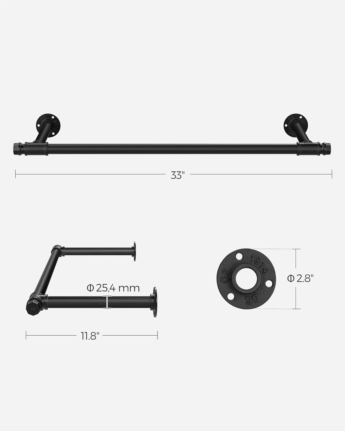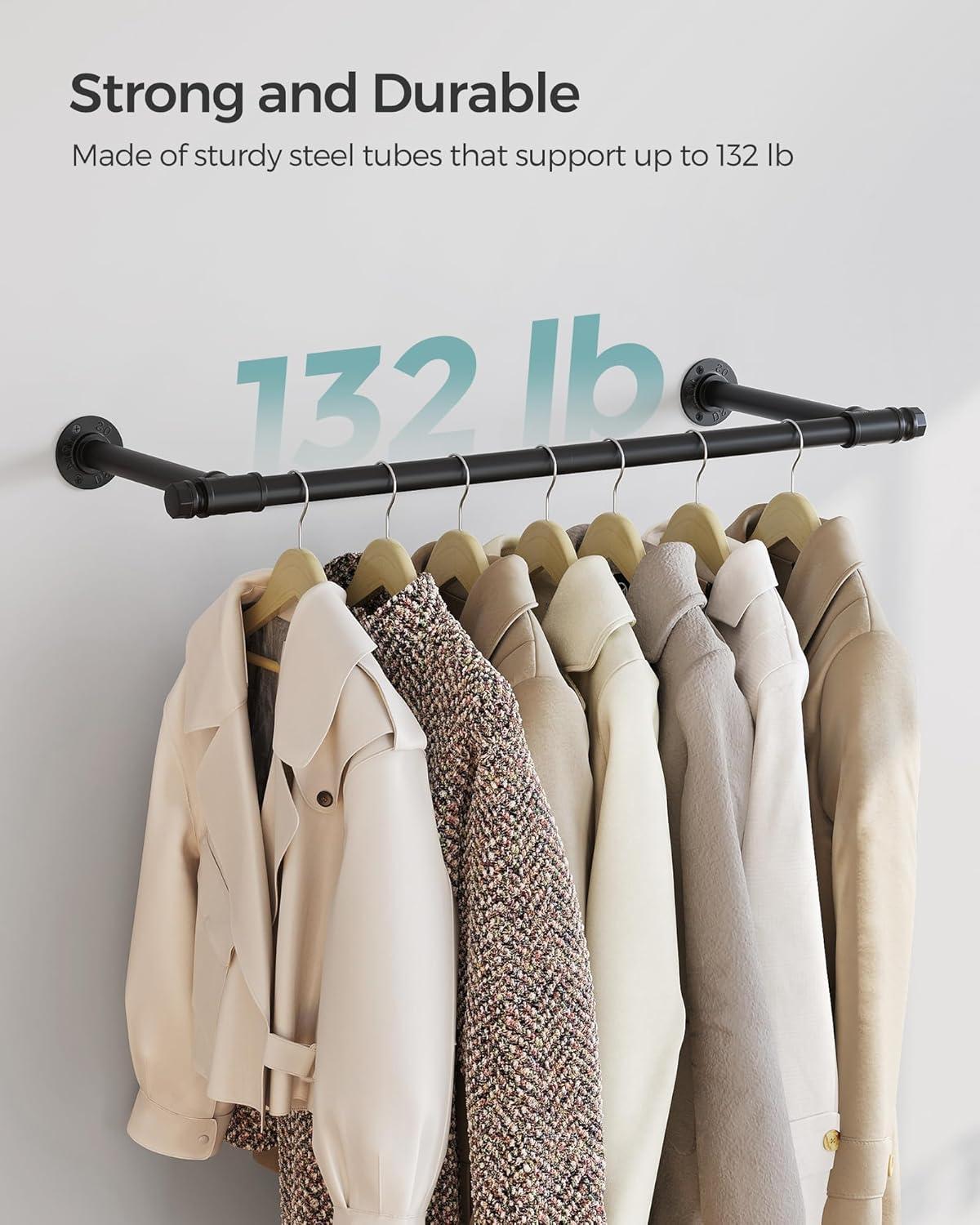 [Robust Steel Rod] The pipe clothing rack is made of a 1″ dia. steel tube that holds up to 132 lb when mounted to a solid wall. Feel free to hang heavy winter coats on it