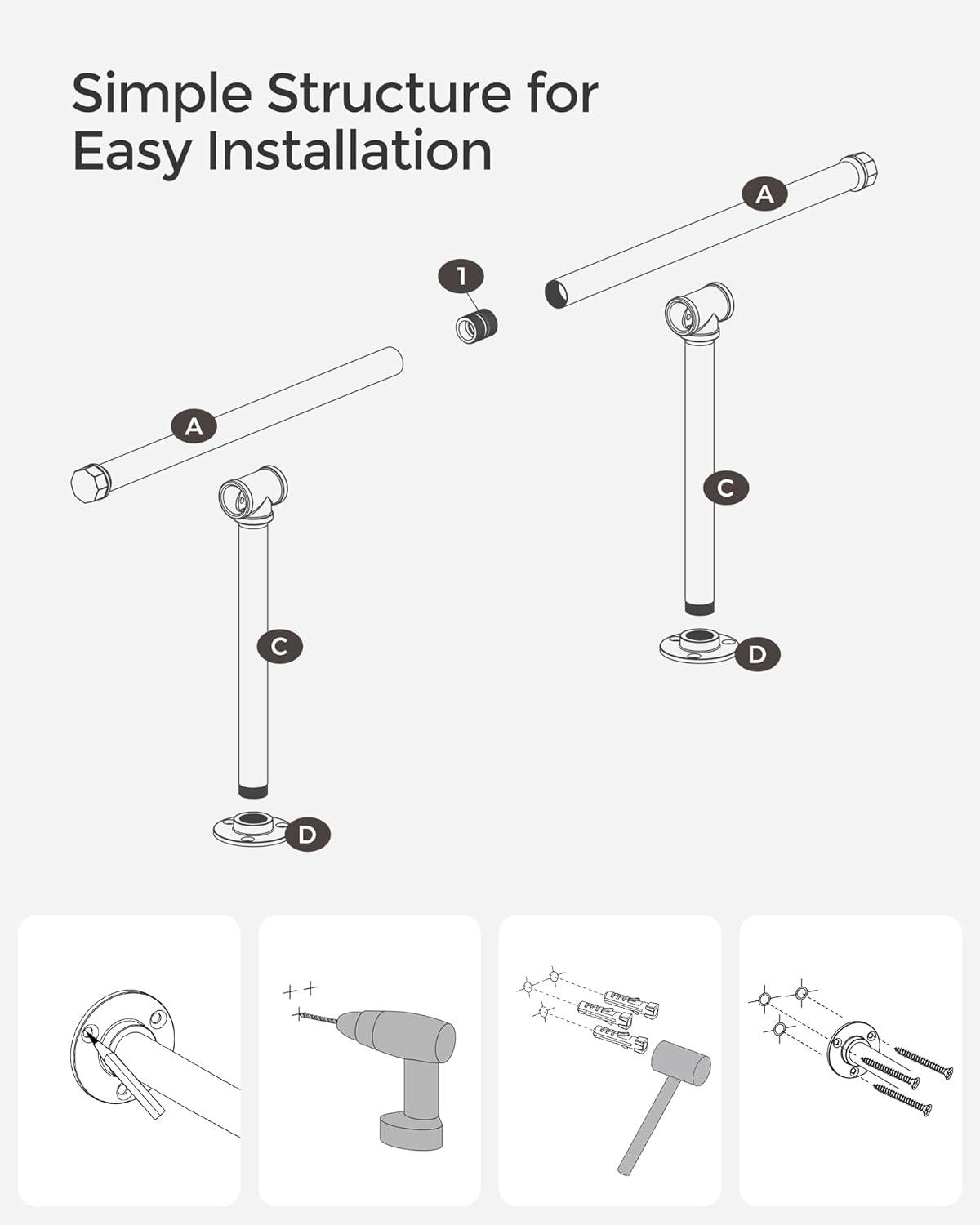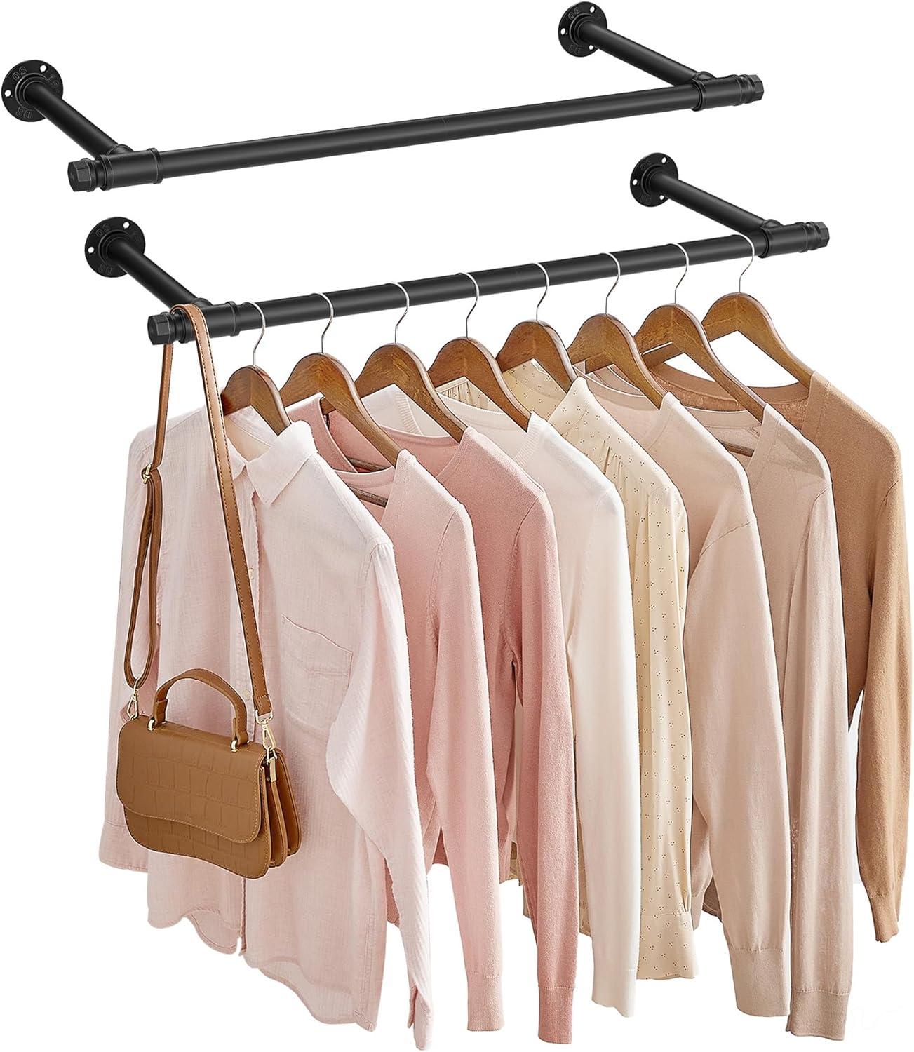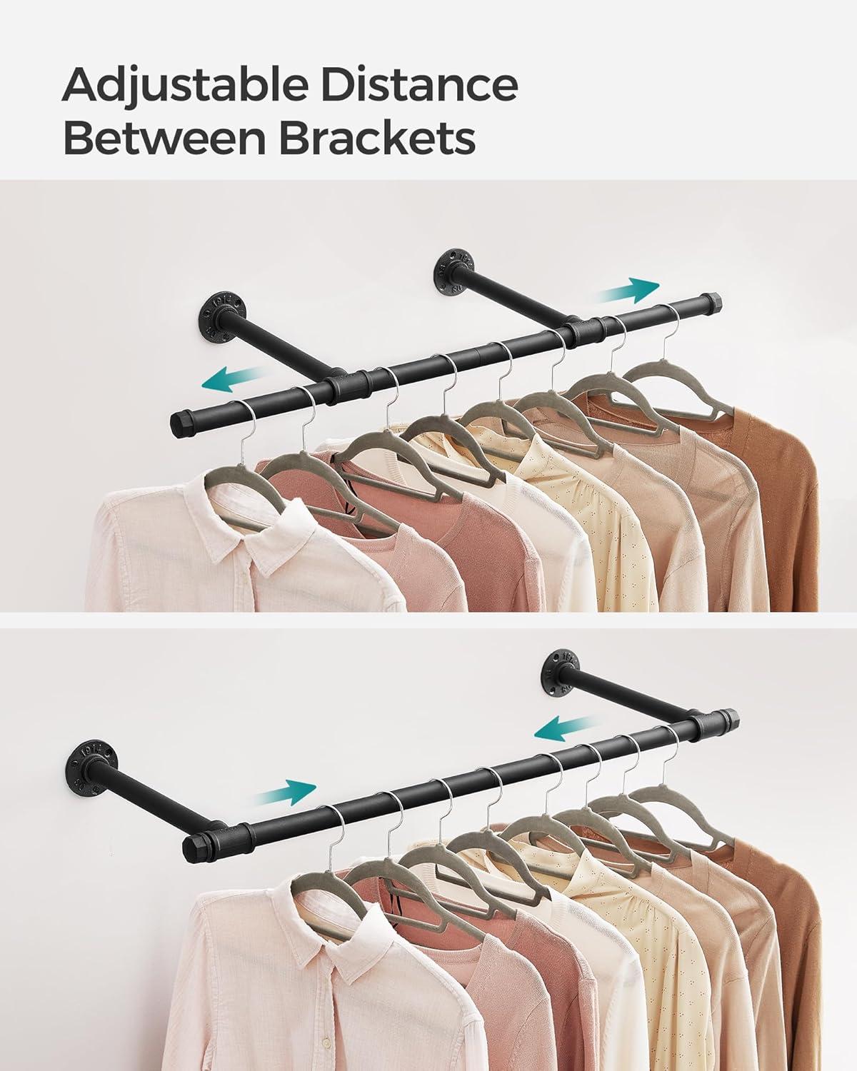 [Robust Steel Rod] The pipe clothing rack is made of a 1″ dia. steel tube that holds up to 132 lb when mounted to a solid wall. Feel free to hang heavy winter coats on it