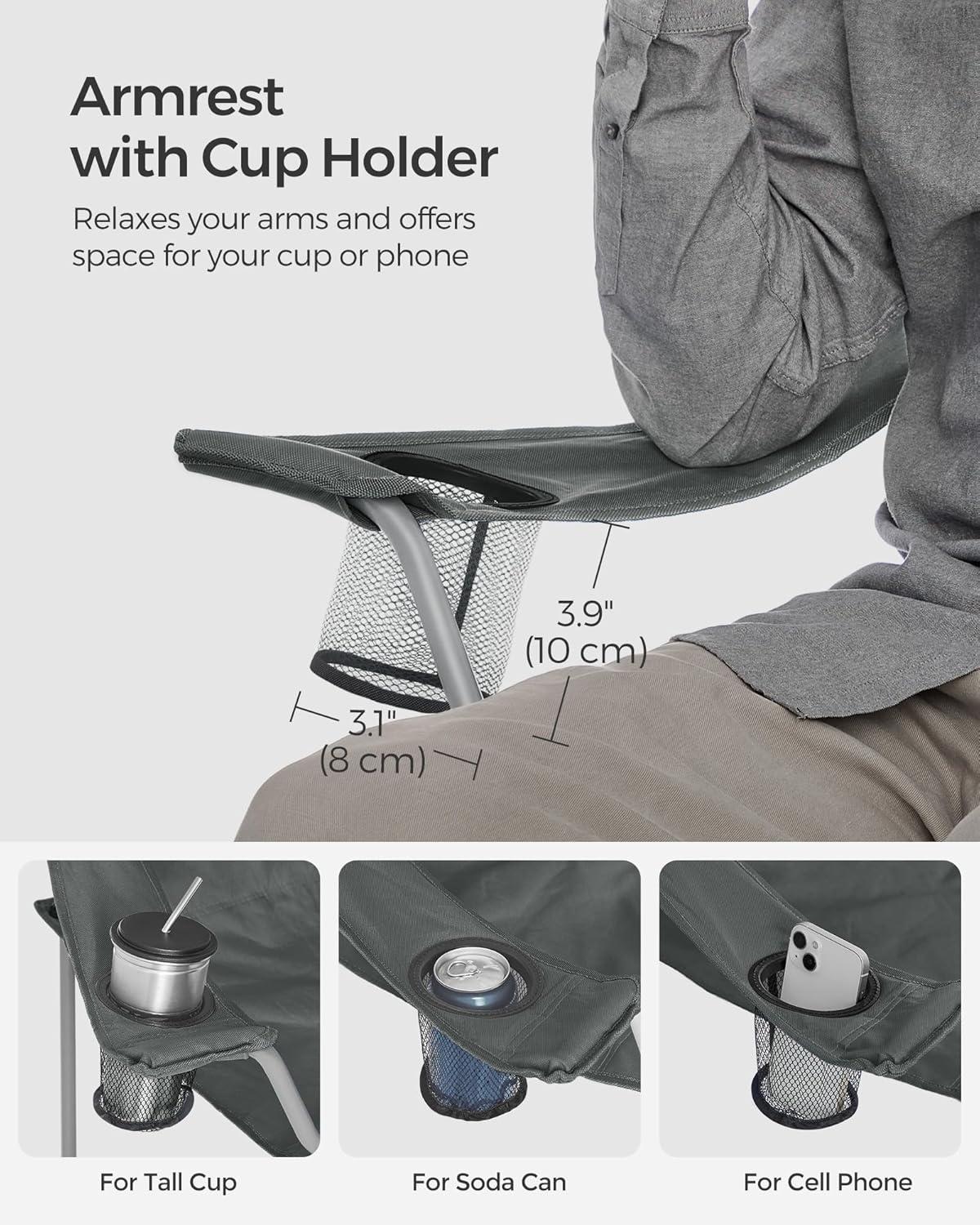 [Foldable and Portable] Each camping chair weighs only 5.7 lb and can be folded and stored in the provided carrying bag (folded size: 5.1″D x 35.4″W x 5.1″H), which is easy to put in the boot of your car or hang on a backpack