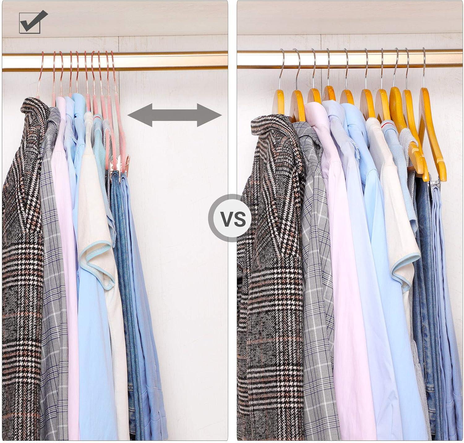 CAN YOUR CLOSET BE LARGER? Not easily, but with a thickness of only 0.2”, these slim hangers save space. Also, you may hang matching coats and pants together, saving more space for more clothes