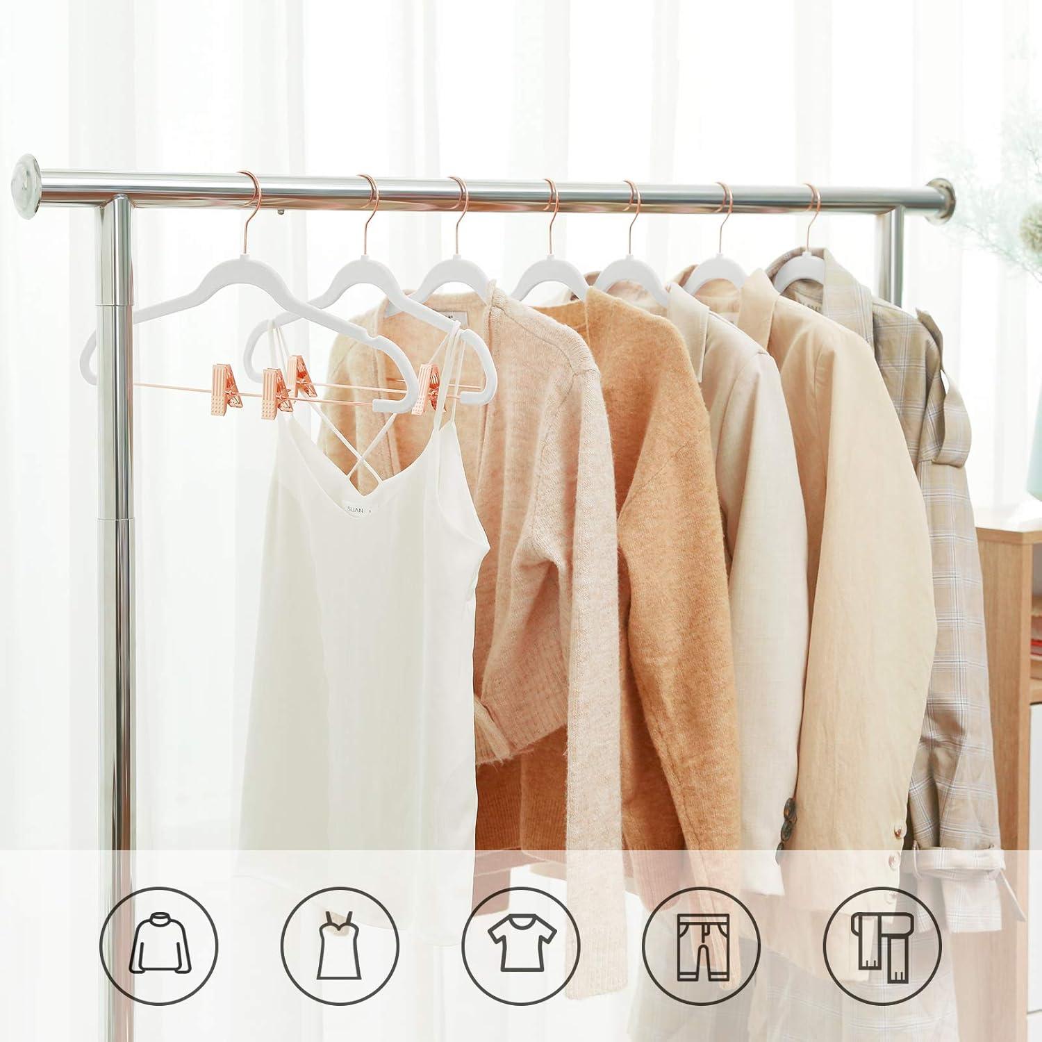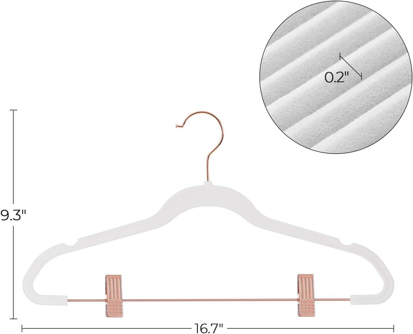 ADD SPARKLE TO YOUR CLOSET: Rose gold colored hook, metal bar, and clips spice up these velvet clothes hangers, adding a bit of sparkle to your closet while keeping your clothes in tip-top shape