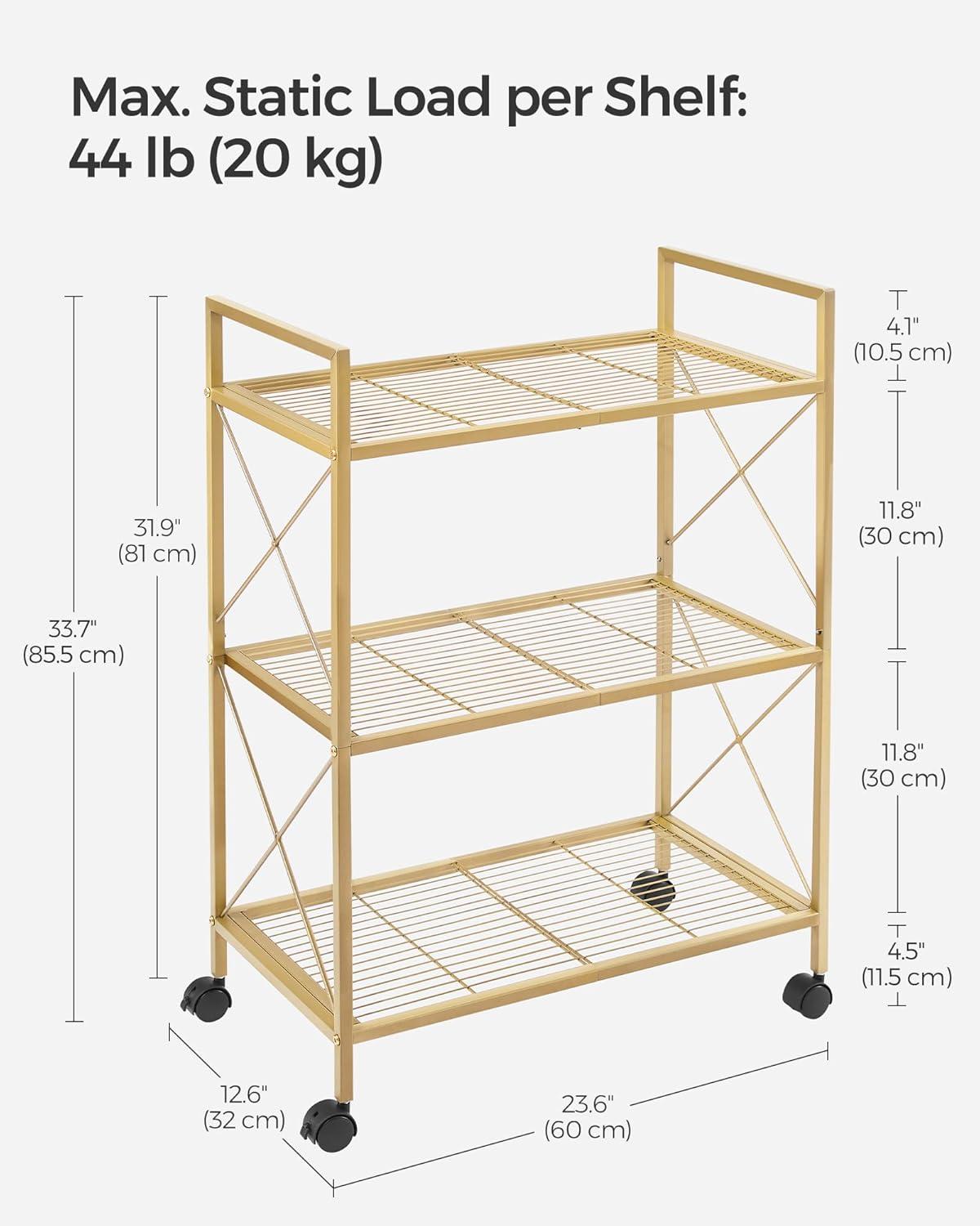 [Reliable Support for Your Items] Dense mesh shelves with 0.6″ (1.5 cm) spacing fit even small items. The strong steel frame boasts high strength for firm support (with casters, max. 44 lb (20 kg) per shelf; with adjustable feet, max. 110 lb (50 kg) per shelf)