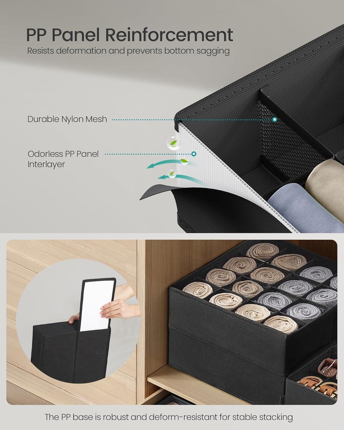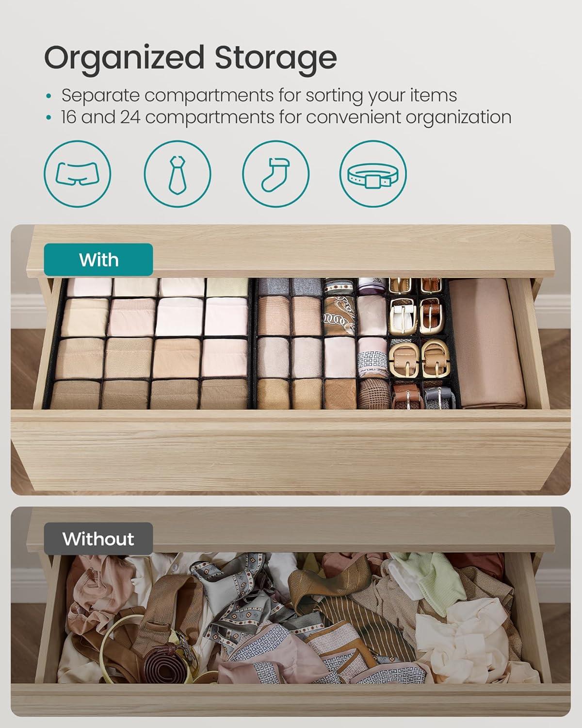 SONGMICS 4 Pack Drawer Organizers, 80 Cells (2x16+2x24), Foldable Dividers, 11.8 x 11.8 x 3.9 Inches, for Socks, Underwear, Ties, Belts, Dove Gray URUS011G01(Ink Black)