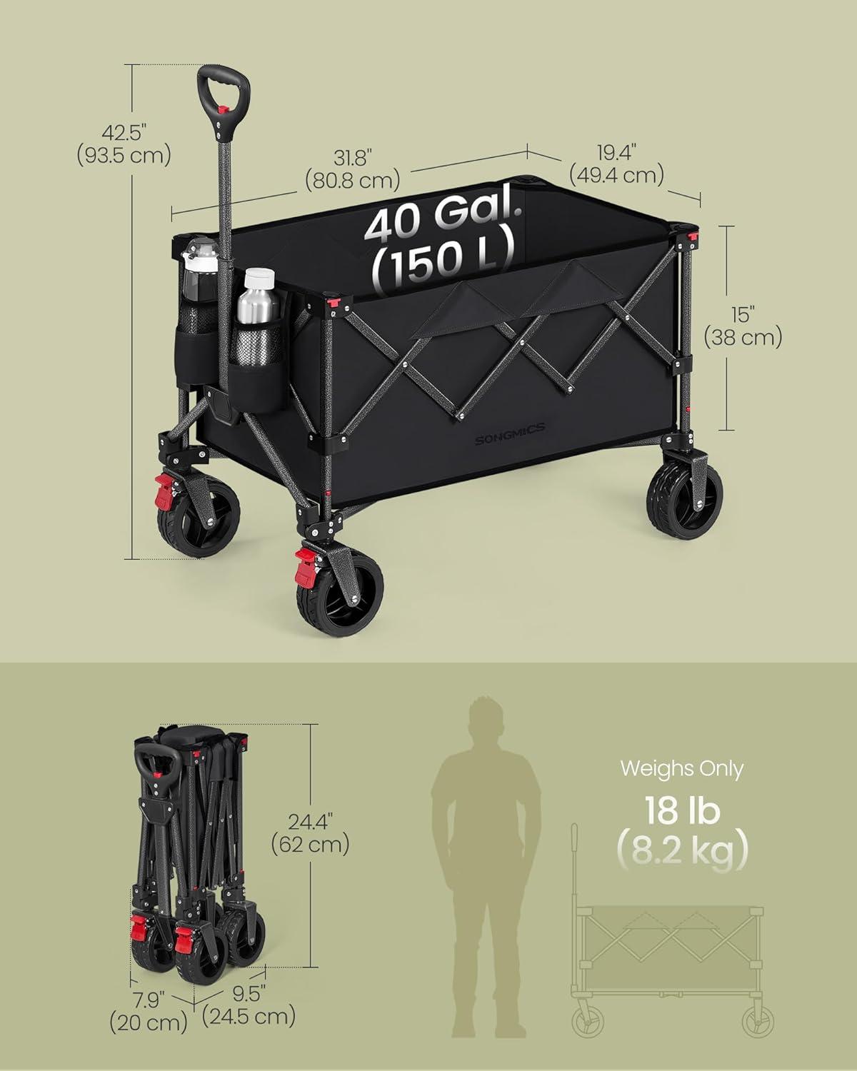 【ROOMY & VERSATILE】Measuring 19.4″D x 31.8″W x 42.5″H, this utility cart's 40-gallon capacity can accommodate all your needs, from picnics and camping to shopping, gardening, and transporting sports equipment