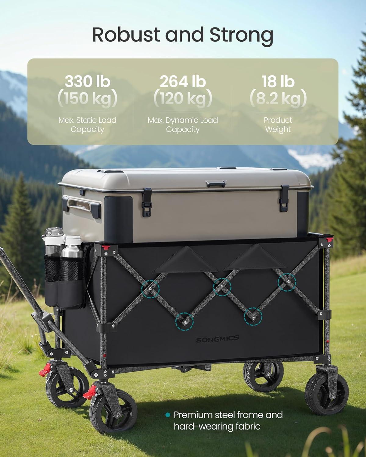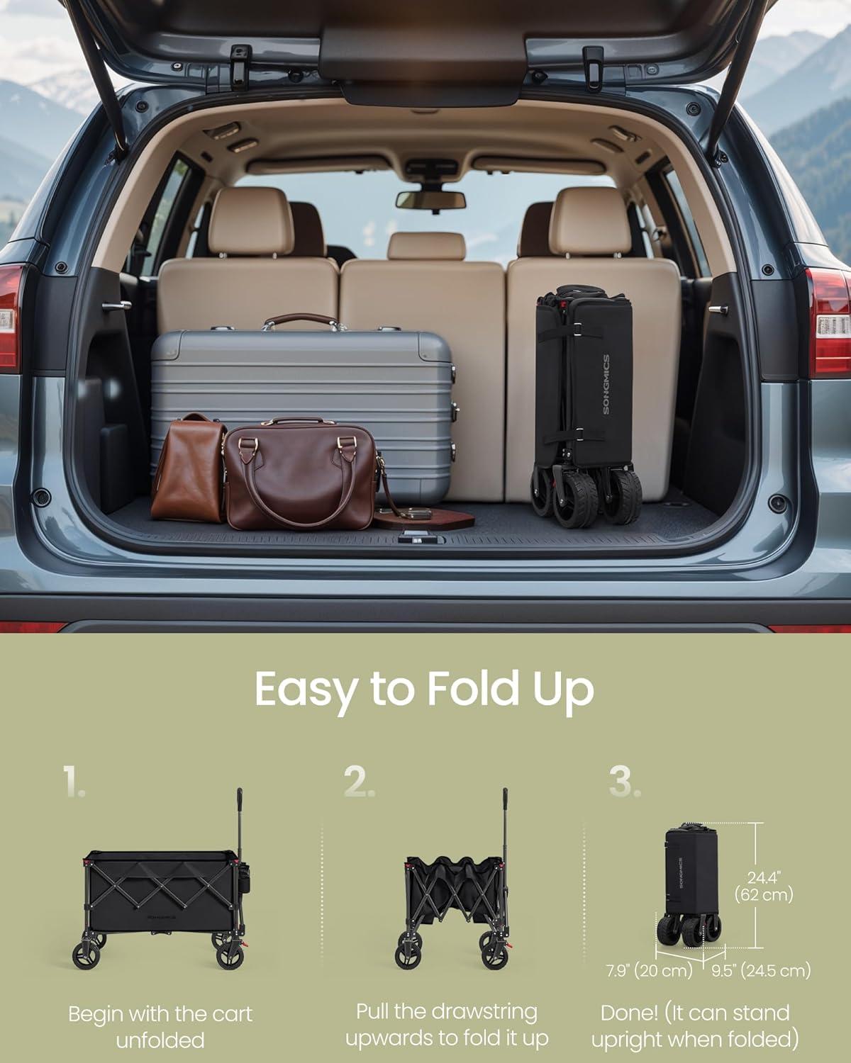 【SPACE-SAVING STORAGE】With its compact folded size of just 9.5″D x 7.9″W x 24.4″H, the wagon allows for easy and space-saving storage, perfectly fitting into empty corners of your home or the boot of your car