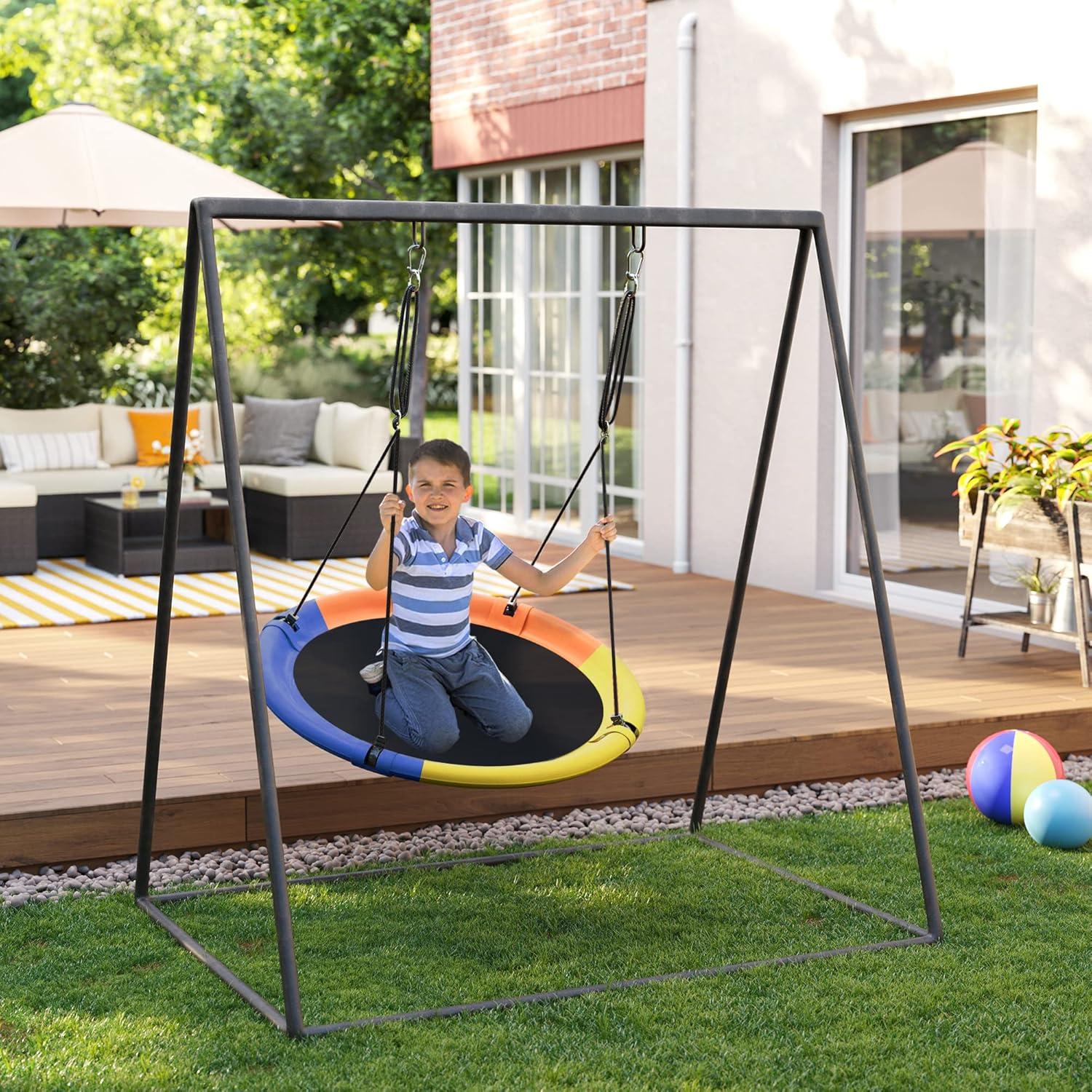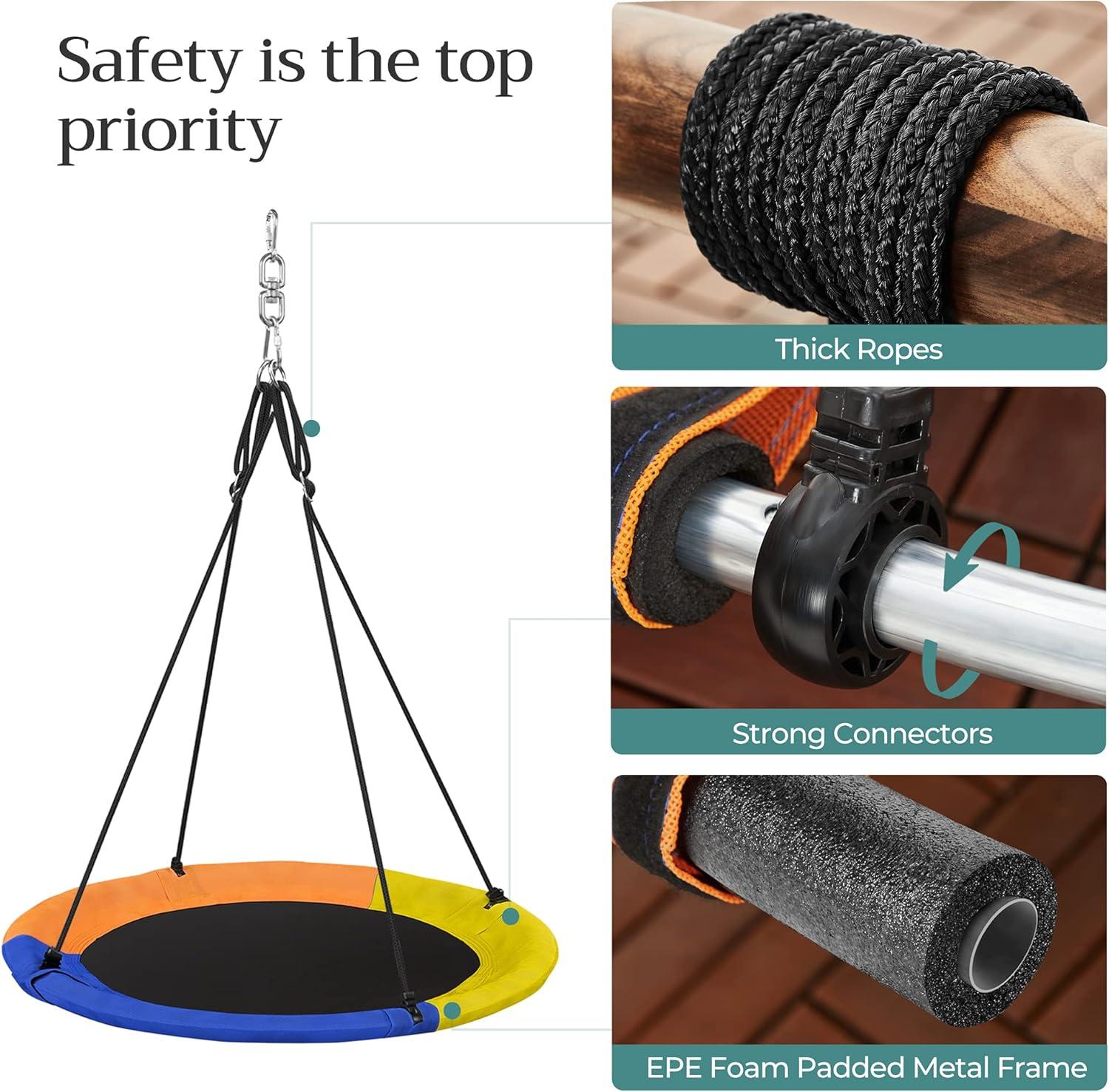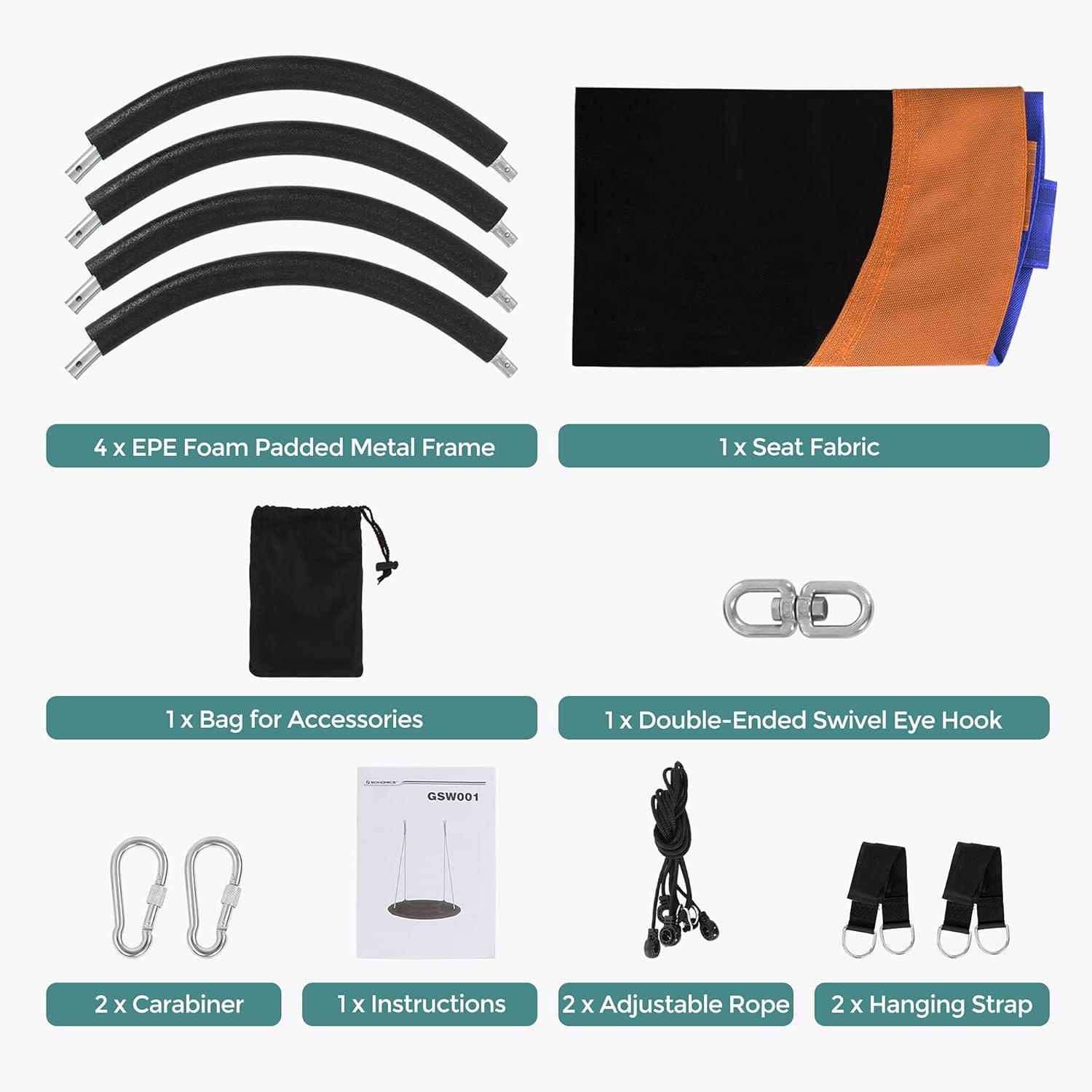 SONGMICS 40-Inch Saucer Swing for Kids Outdoor, 700 lb Load Capacity, Tree Swing includes Hanging Kit, Blue, Orange, Yellow, and Black UGSW001Y02