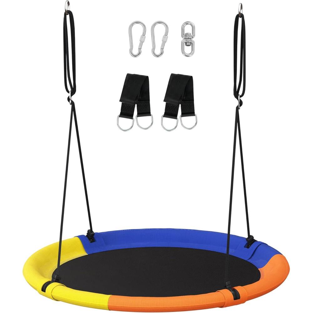 imageSONGMICS 40Inch Saucer Swing for Kids Outdoor 700 lb Load Capacity Tree Swing includes Hanging Kit Blue Orange Yellow and Black UGSW001Y02