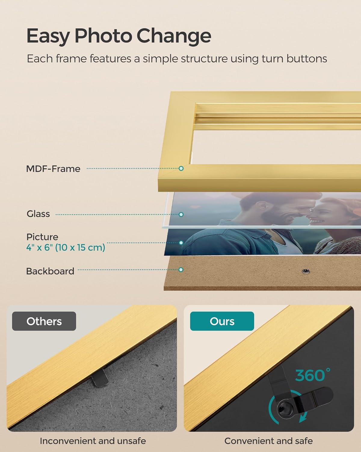 imageSONGMICS 4x6 Collage Picture Frames Family Photo Collage Frame Set of 4 for Wall Decor Glass Front Wall Hanging or Tabletop Ink Black URPF25BKPale Gold