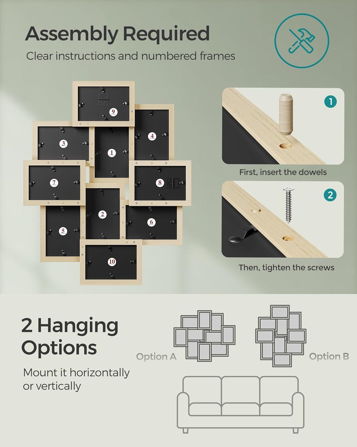 [Stunning Display Made Effortless] With straightforward instructions and each frame numbered on the back, assembling this collage frame is easy, instantly enhancing your living room, bedroom, or office with a personal touch