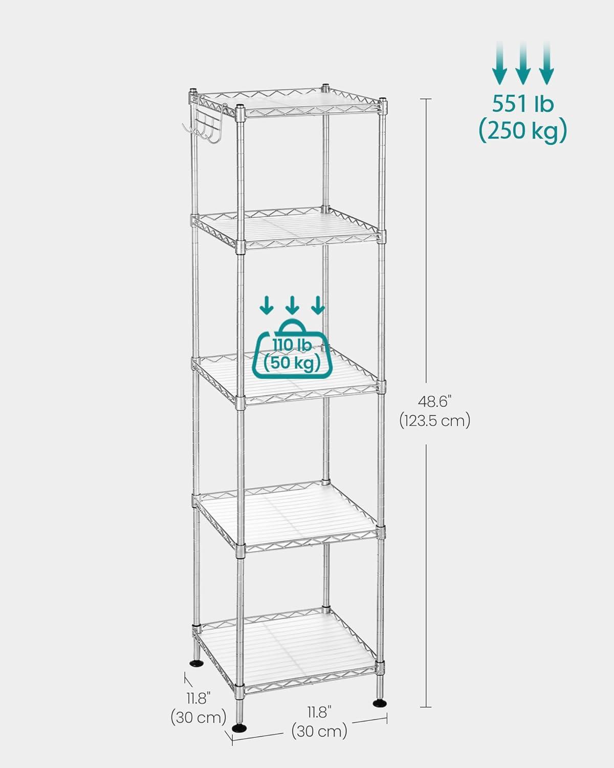 [Good News for Small Spaces] Have you ever tried to squeeze a bulky storage shelf in your tiny bathroom but failed? Meet your lifesaver—a space-saving shelving unit that only takes up 11.8'' x 11.8'' but offers 5 tiers of storage