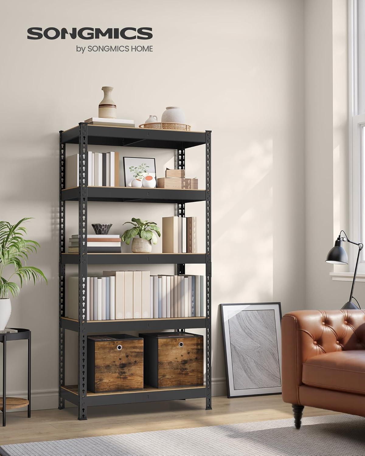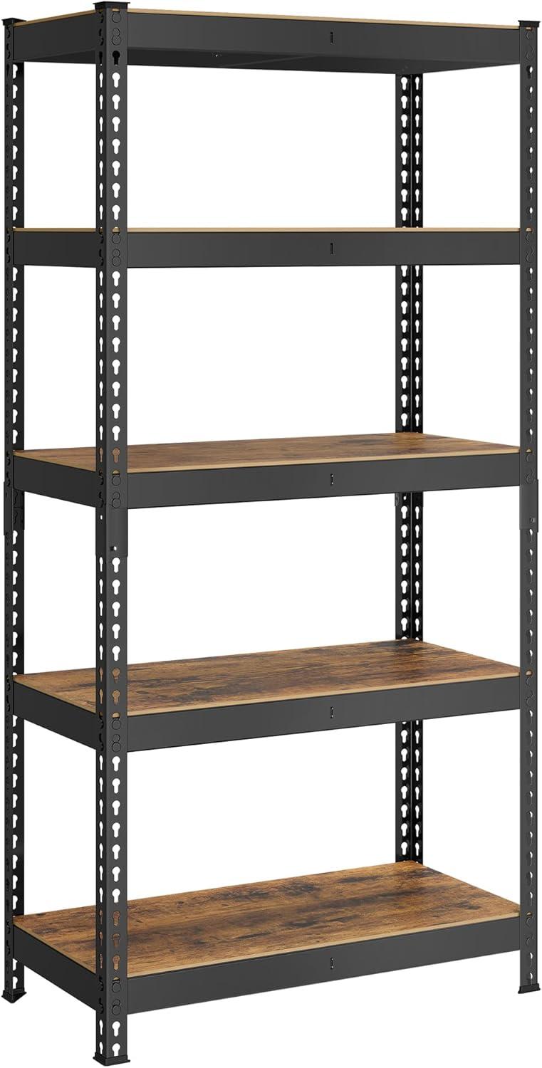 Stable & High Load Capacity: The sturdy steel frame and thick MDF panels of this 5-tier shelving unit offer a max load of 462 lb per shelf, and reinforced crossbeams add extra stability