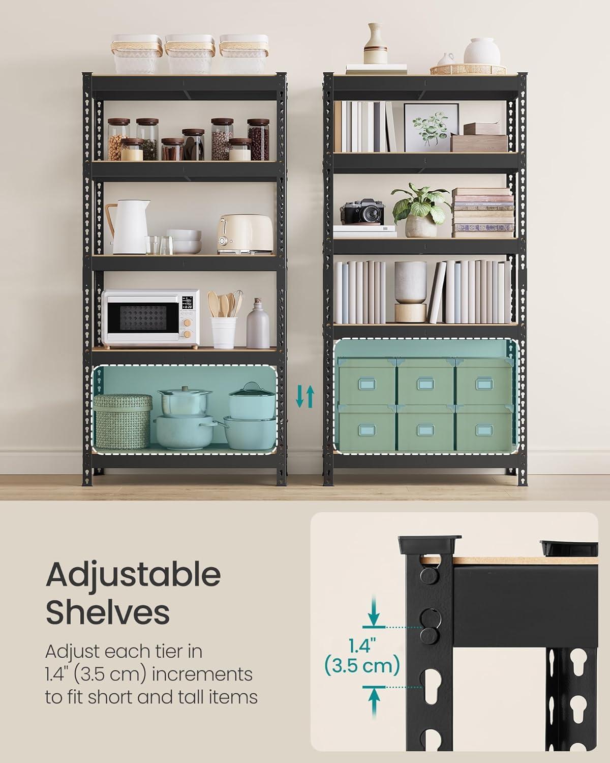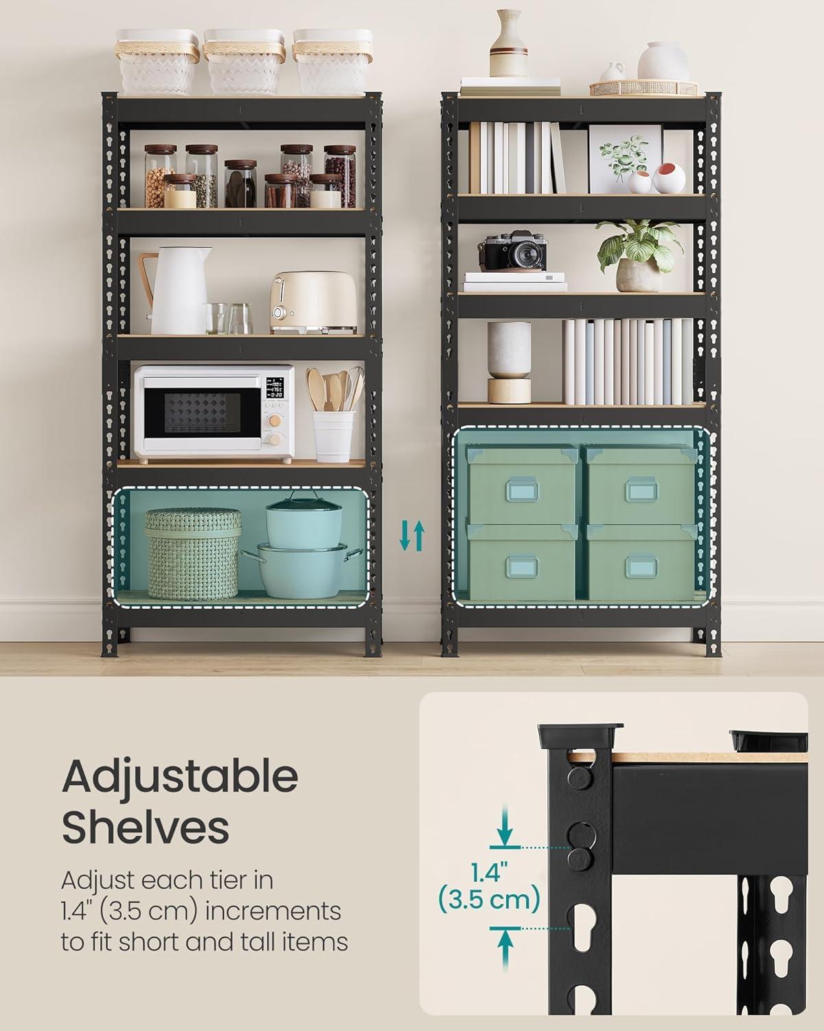 Adjustable Shelves: You can adjust the height of each shelf in 1.4″ increments, allowing you to store various items, from boxes to sports equipment and tools, in a convenient and organized manner