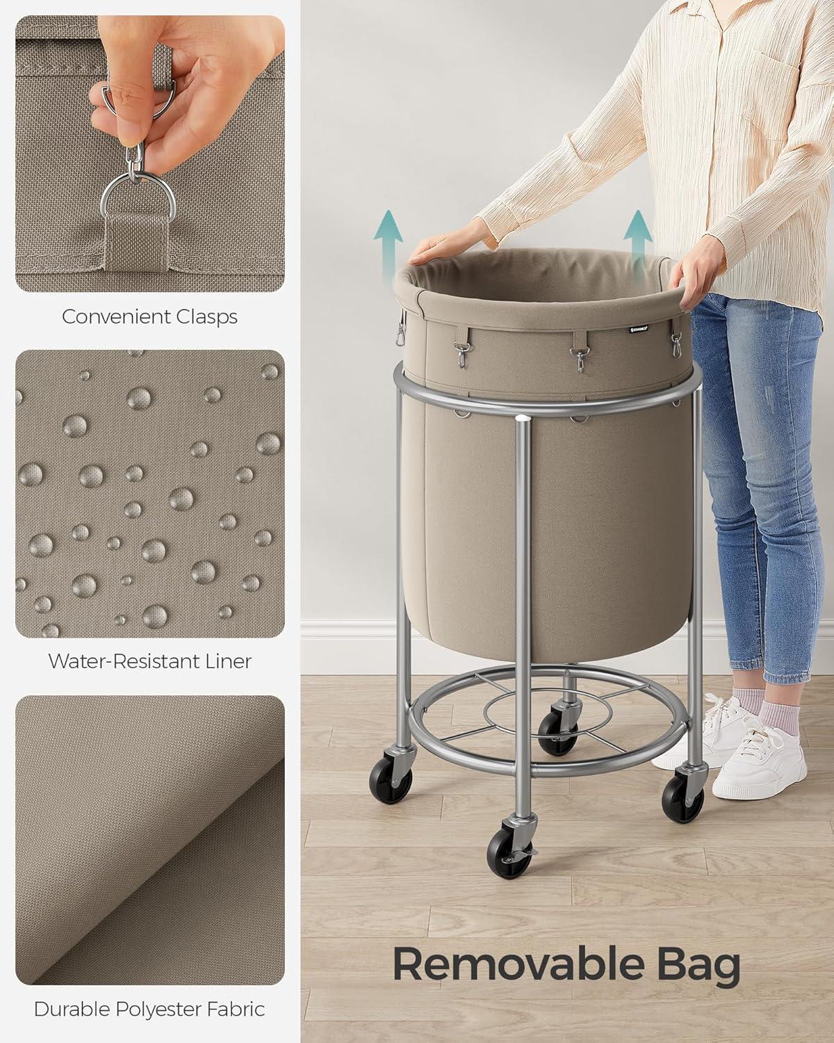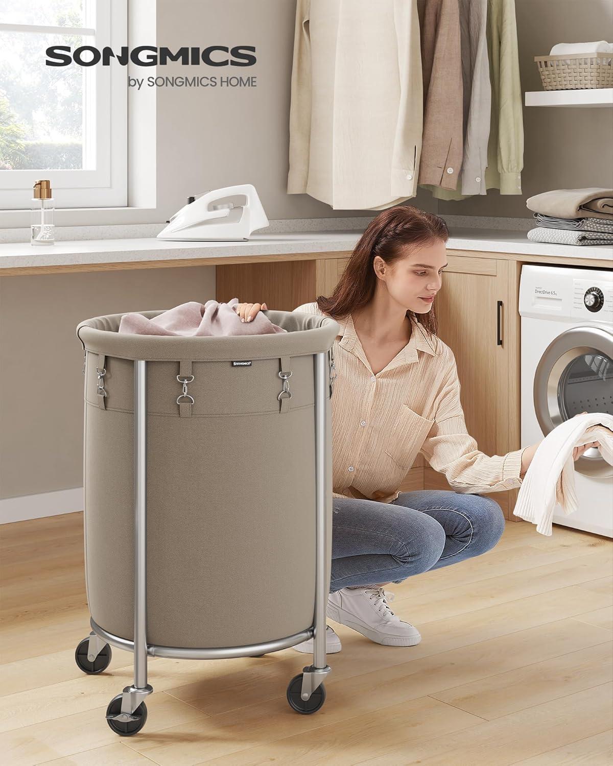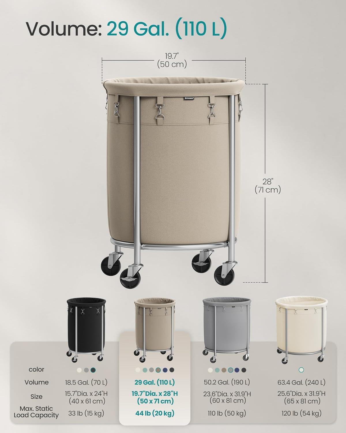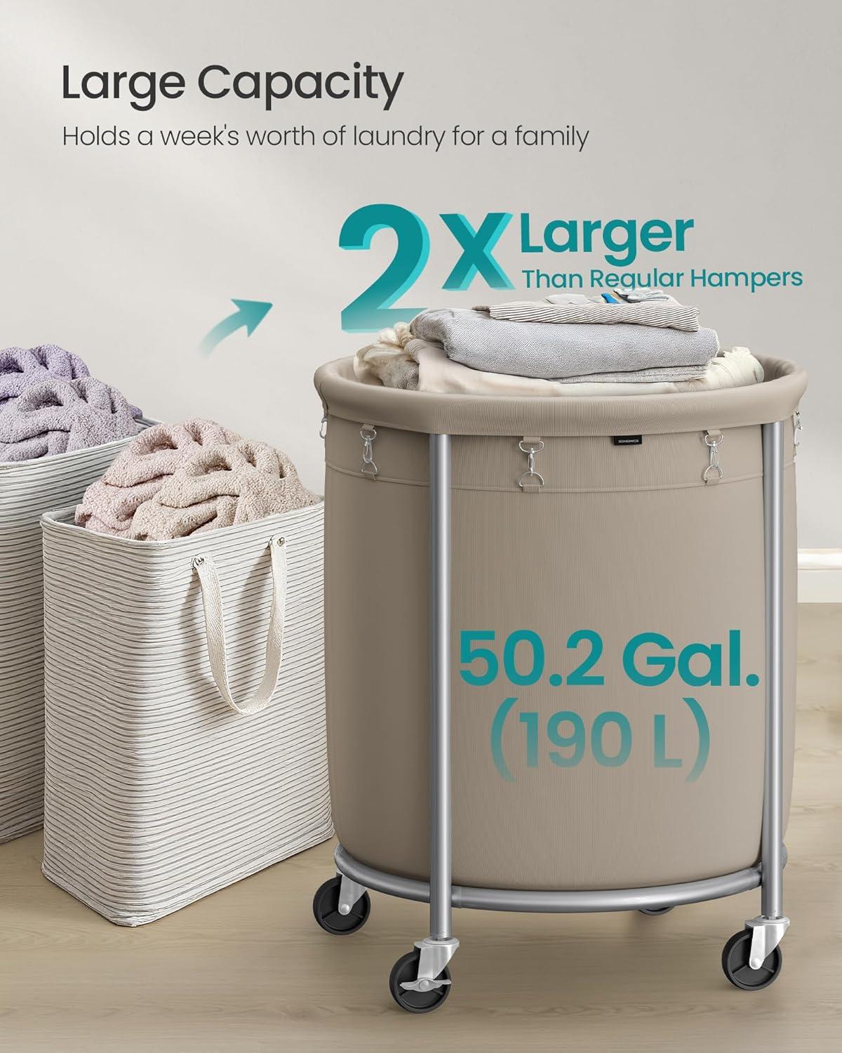 Extra Large Capacity: With a size of 23.6″Dia. x 31.9″H, this laundry basket on casters has a large capacity for lots of clothes and bedding sheets, letting you easily do all of your laundry in a single trip