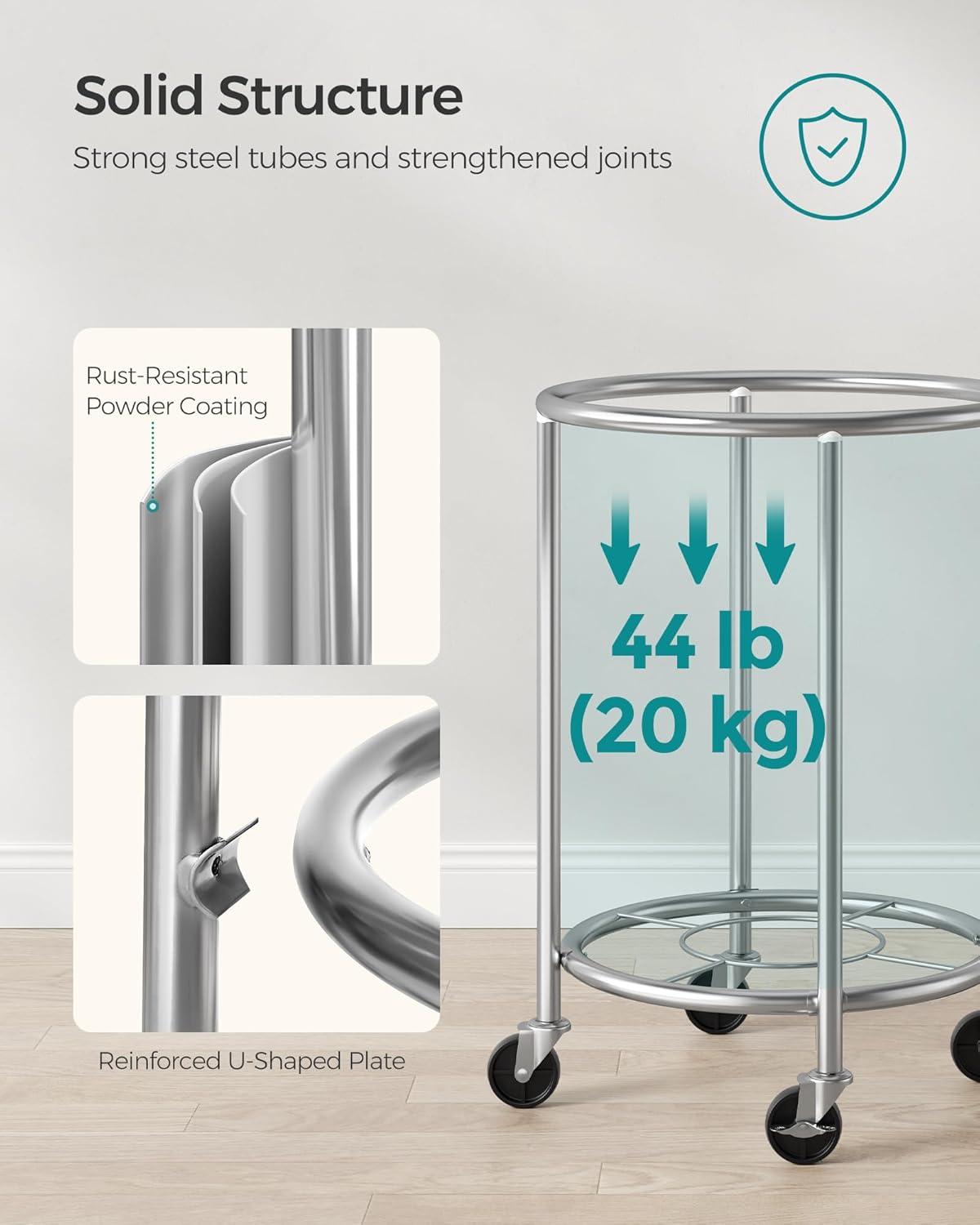 Stable and Durable: With sturdy steel tubes and reinforced U-shaped plates, this laundry organizer boasts a solid structure that can support up to 110 lb. The powder coating makes the tubes rust-resistant for greater durability