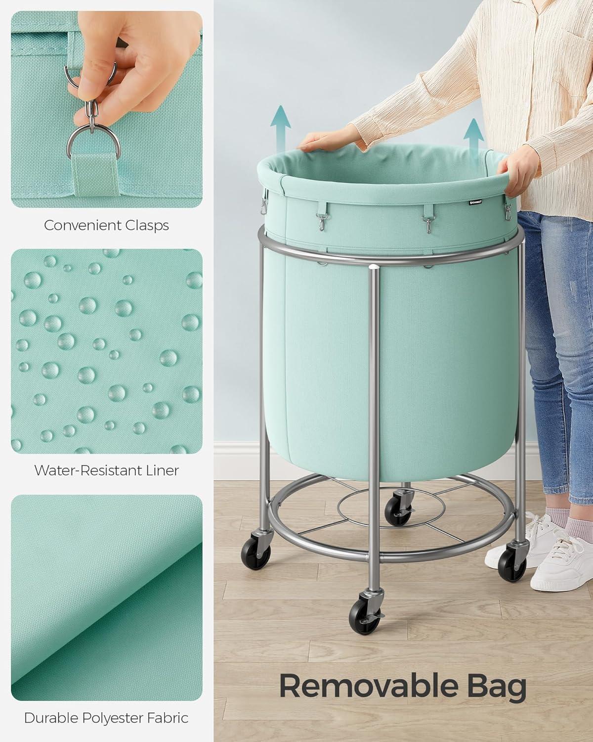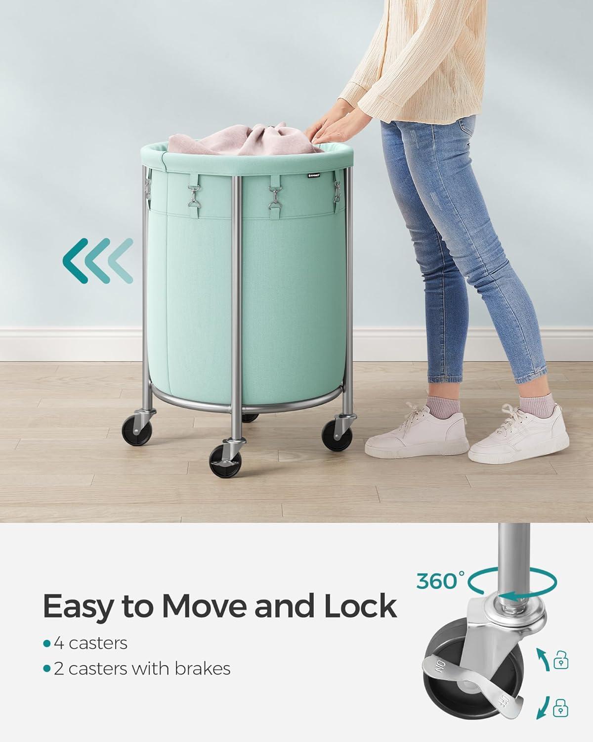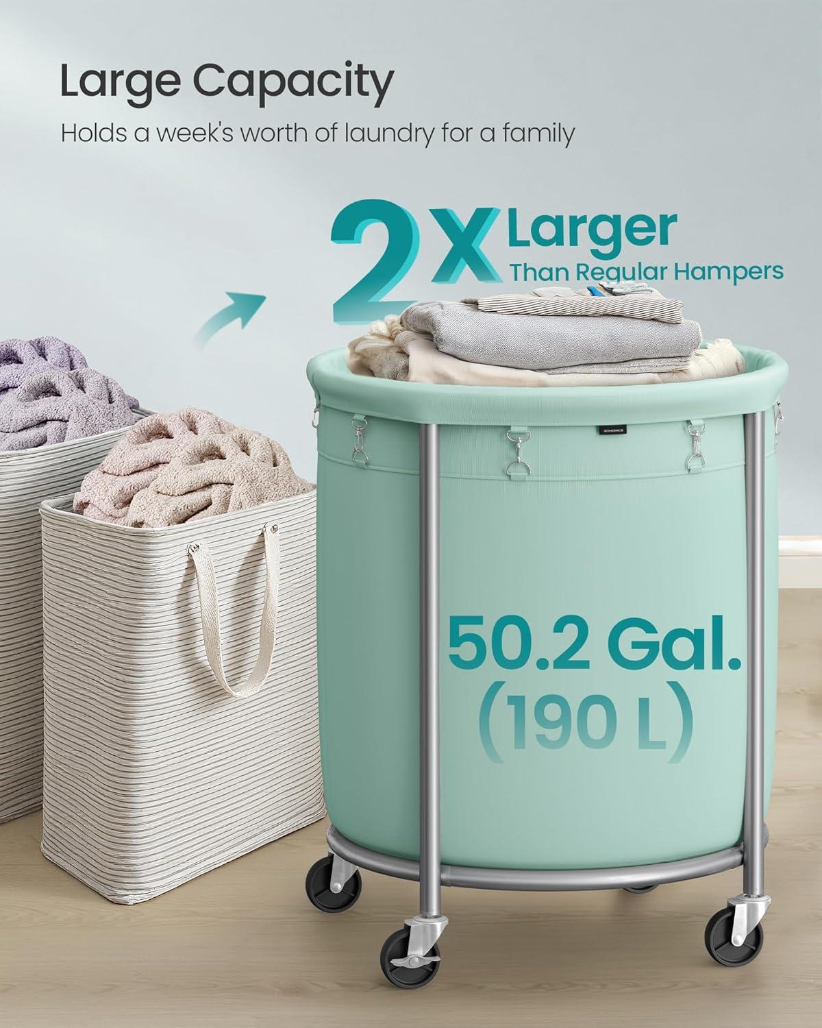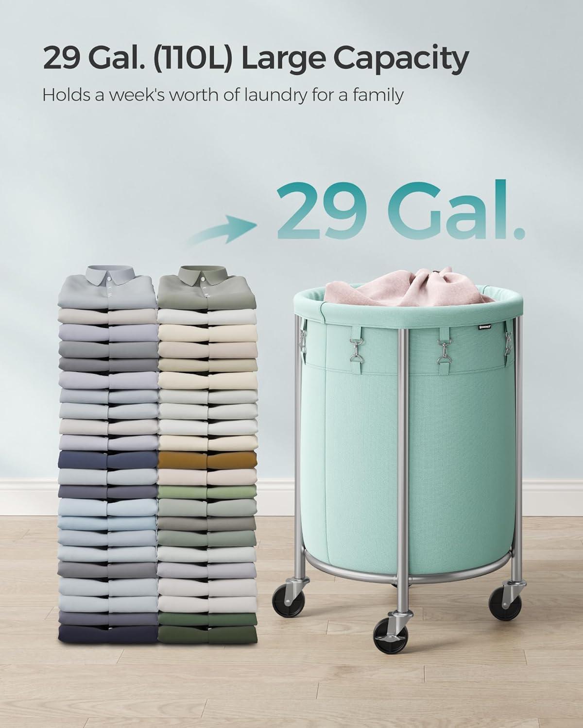 Extra Large Capacity: With a size of 23.6″Dia. x 31.9″H, this laundry basket on casters has a large capacity for lots of clothes and bedding sheets, letting you easily do all of your laundry in a single trip