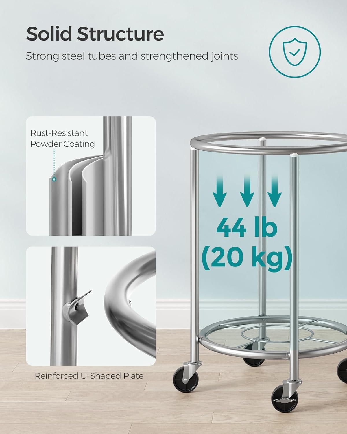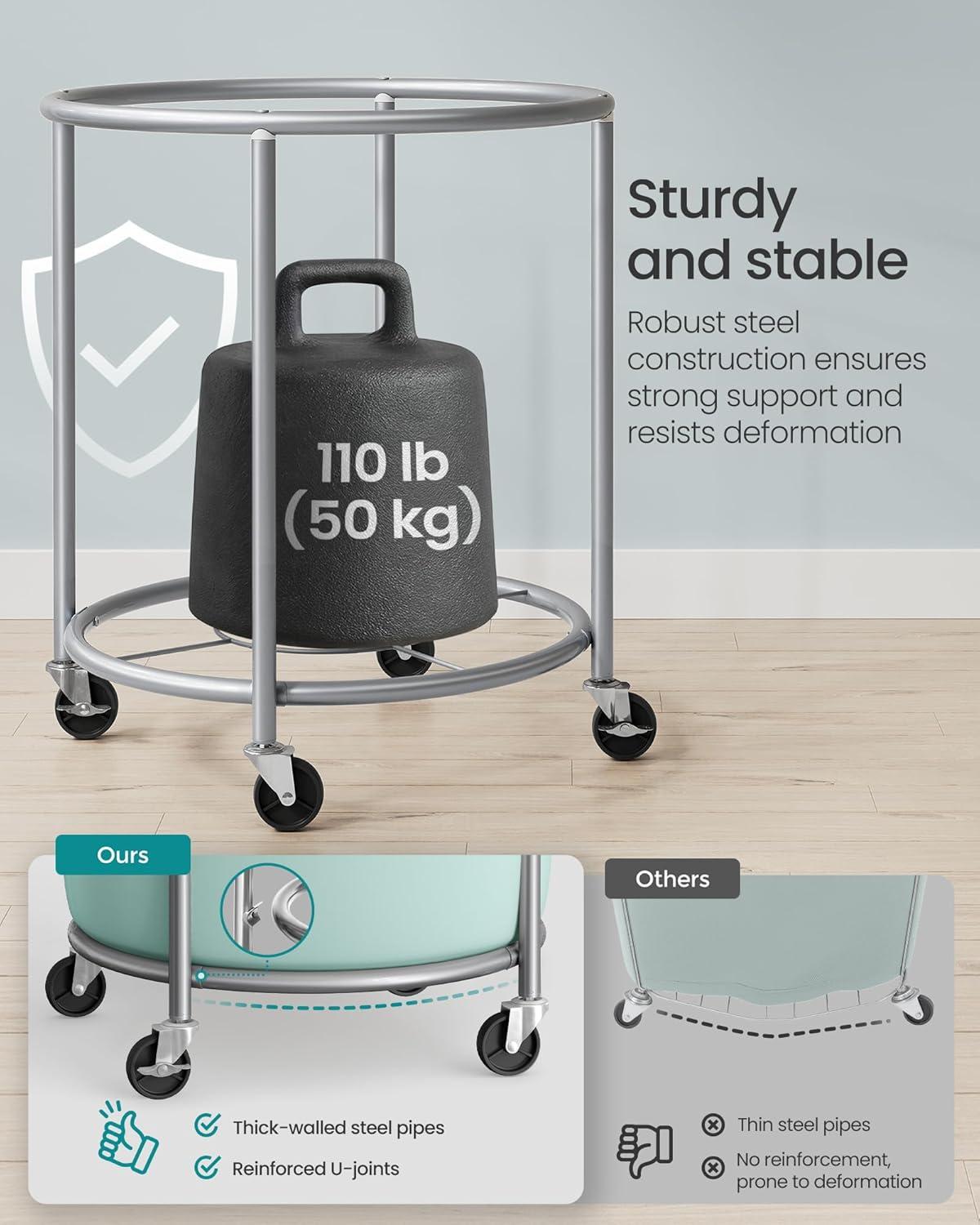 Stable and Durable: With sturdy steel tubes and reinforced U-shaped plates, this laundry organizer boasts a solid structure that can support up to 110 lb. The powder coating makes the tubes rust-resistant for greater durability