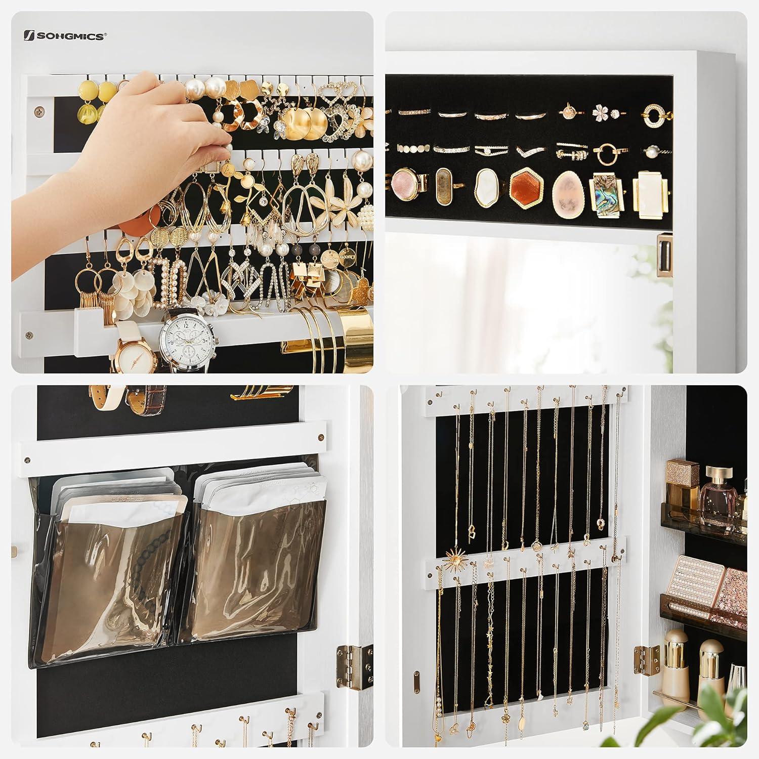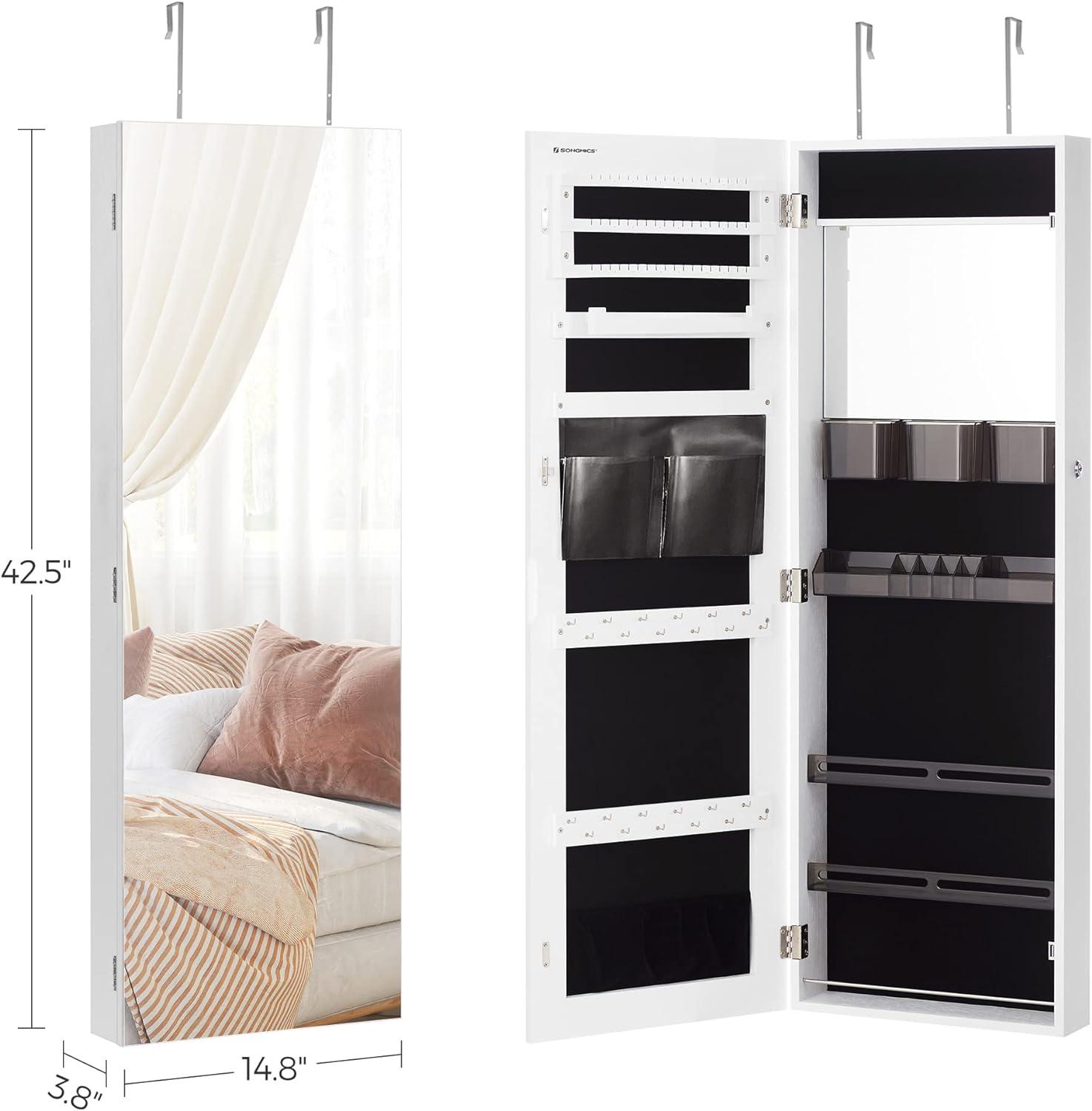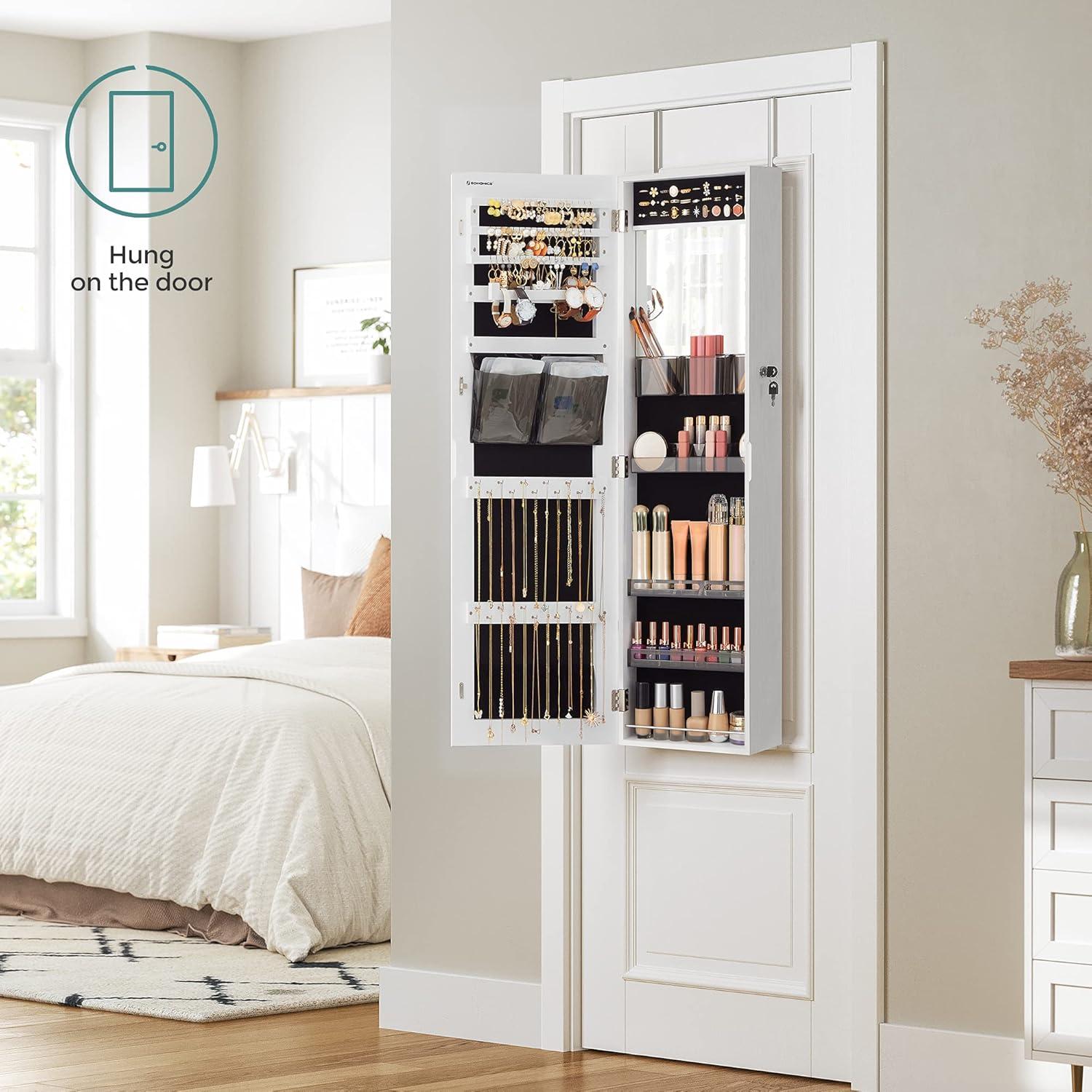 【SIMPLIFIED INSTALLATION】This wall-mounted jewelry cabinet comes pre-assembled, all you need to do is to decide whether to hang it on the wall or over the door. Installation a breeze!