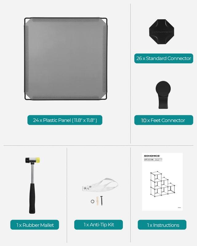 [Stable and Safe] Steel frames and strong PP plastic panels are connected by sturdy ABS connectors, enabling this cube storage organizer to hold up to 22 lb per cube. Anti-tip kit provides added safety