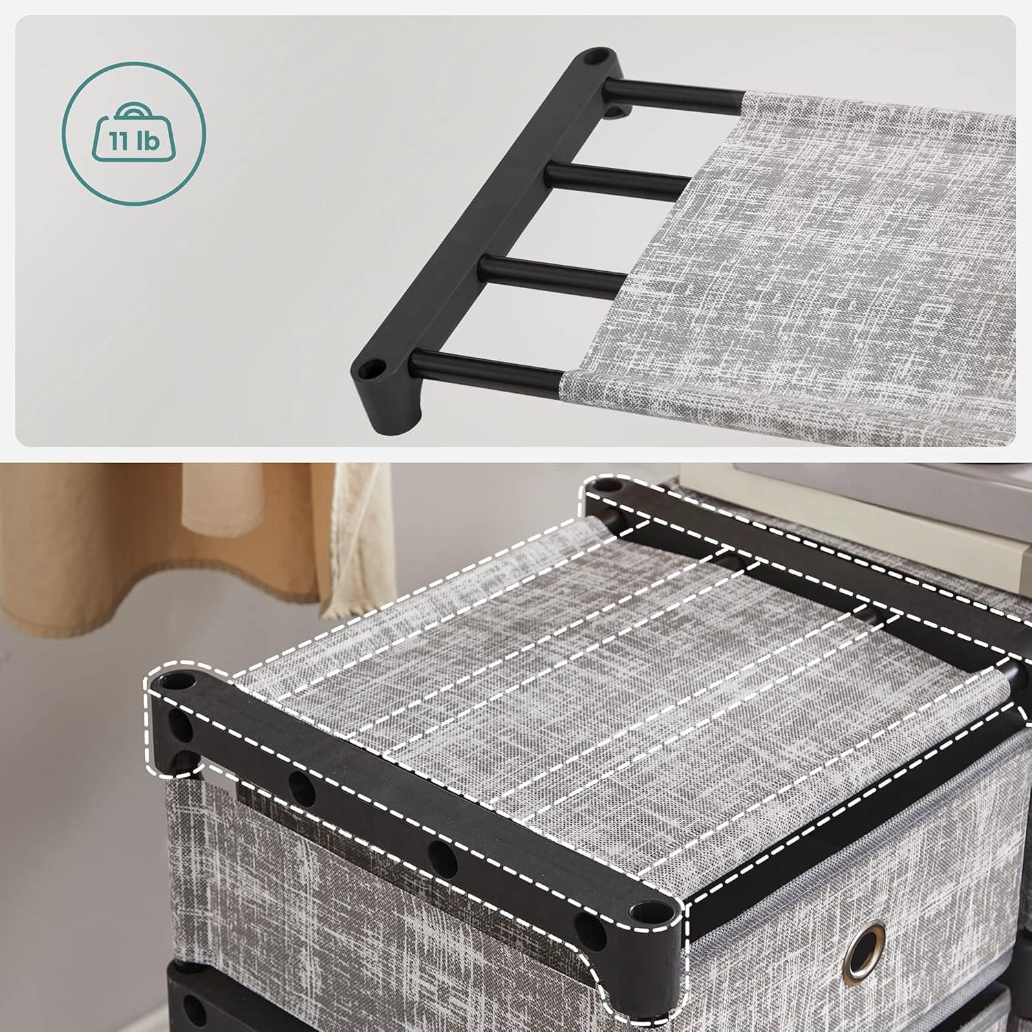 Large Capacity: Thanks to high-quality plastic connectors and reinforcement bars, this chest of drawer is durable and stable. Each cube can hold up to 11 lb