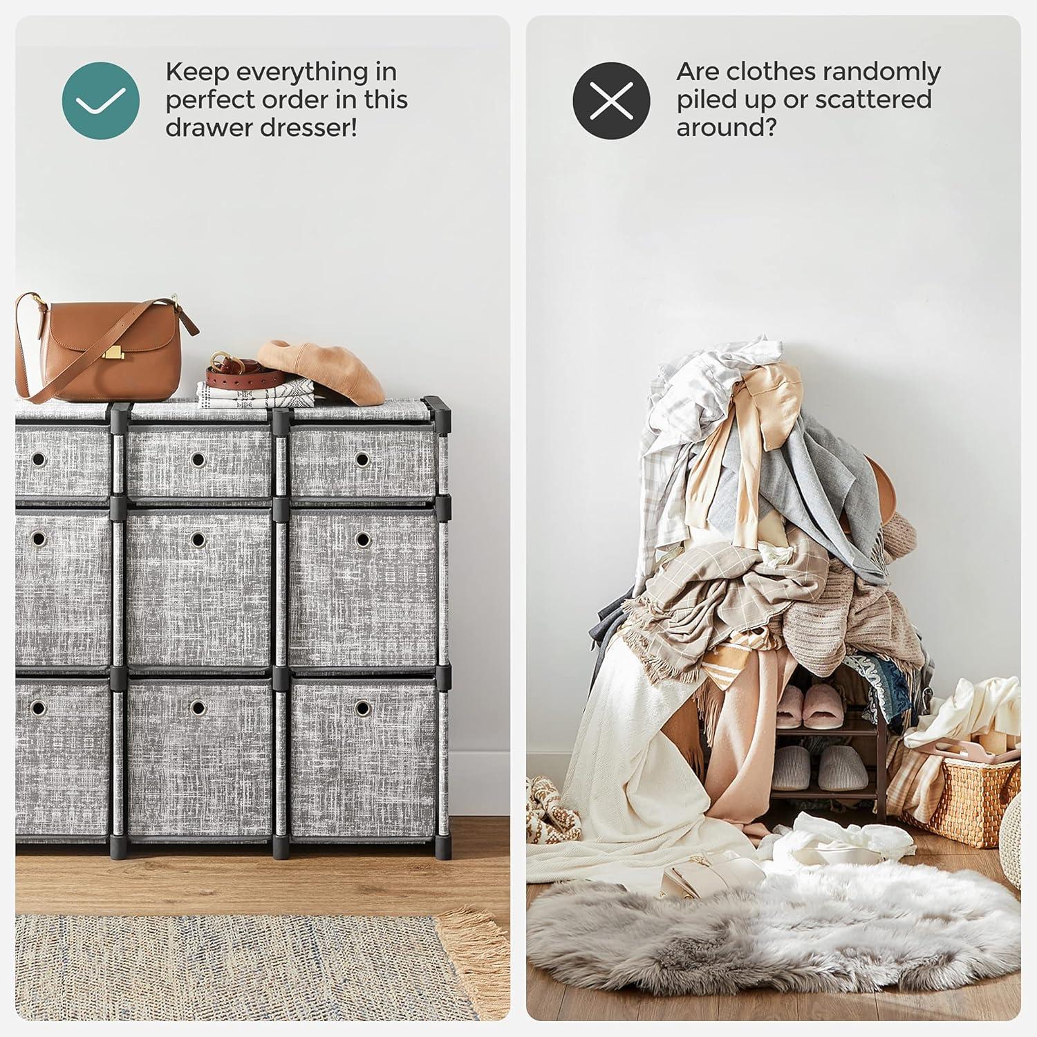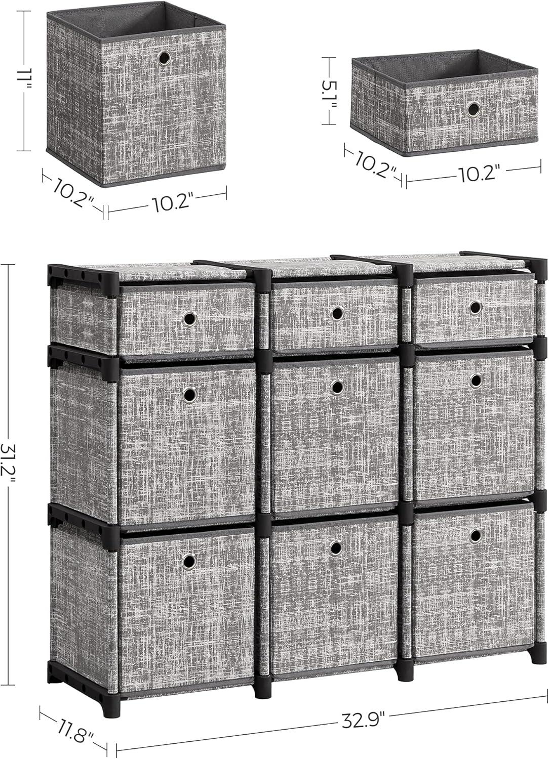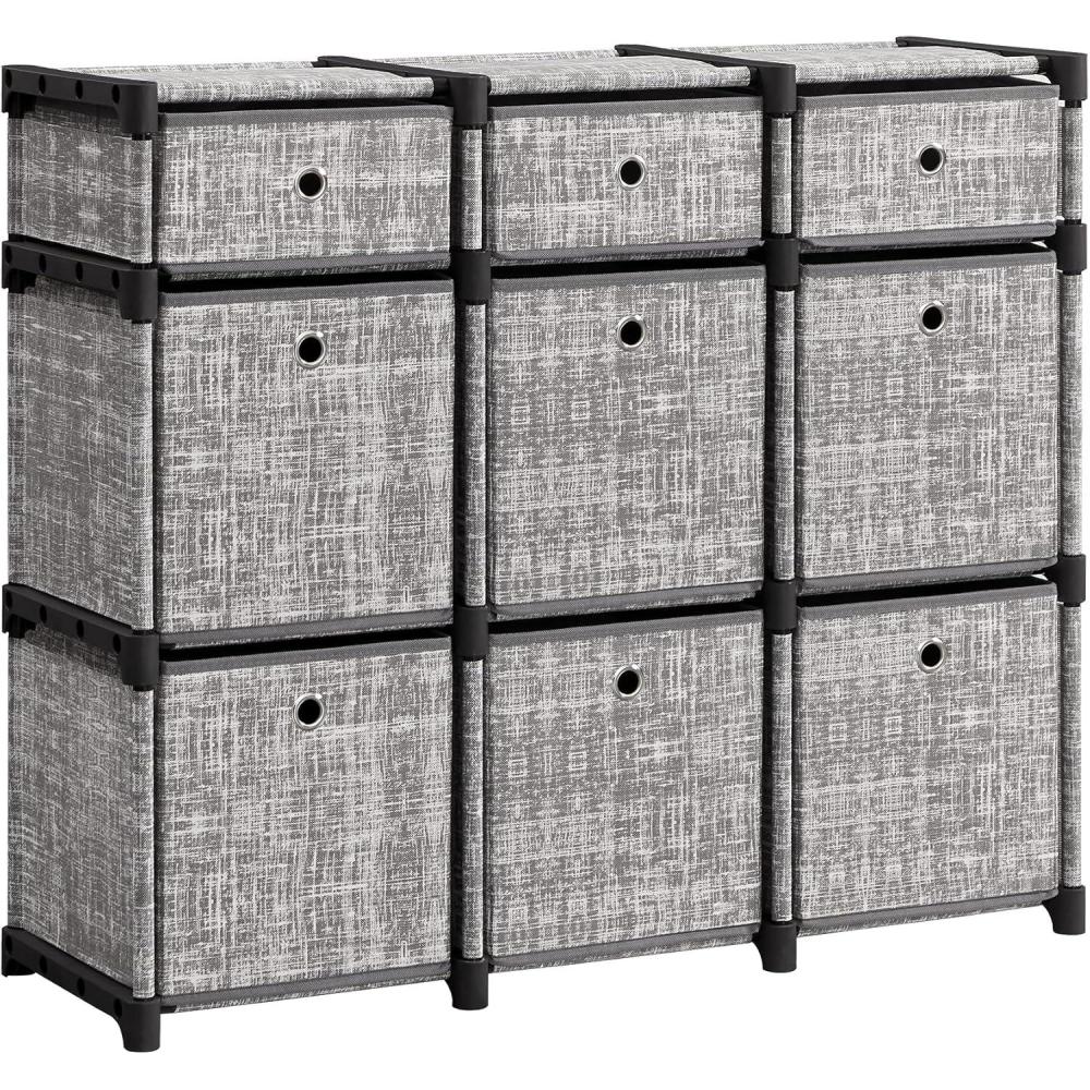 What You Get: A shelving unit with 9 storage drawers, an anti-tip kit, detailed instructions, and a hammer for making your organization easier