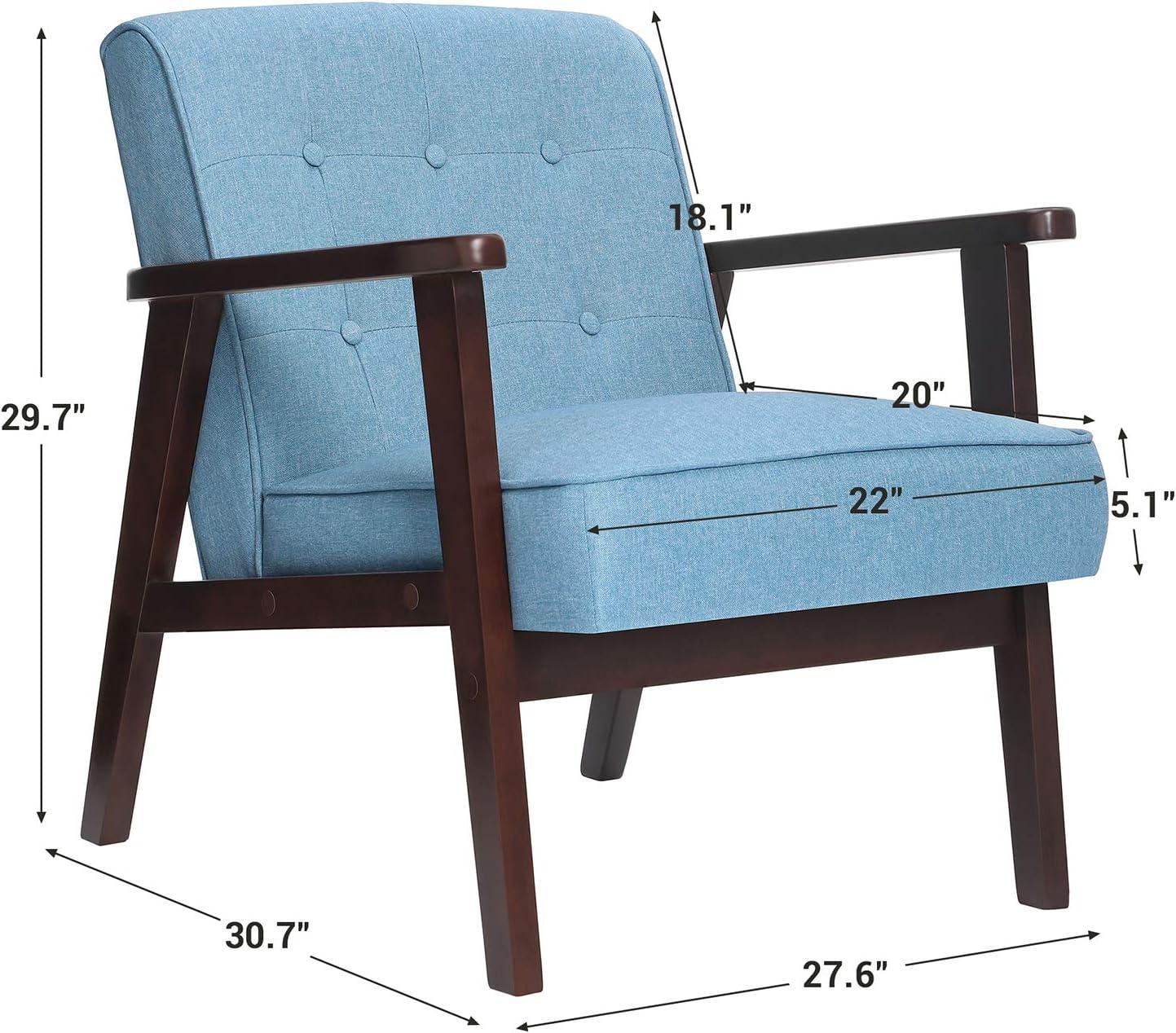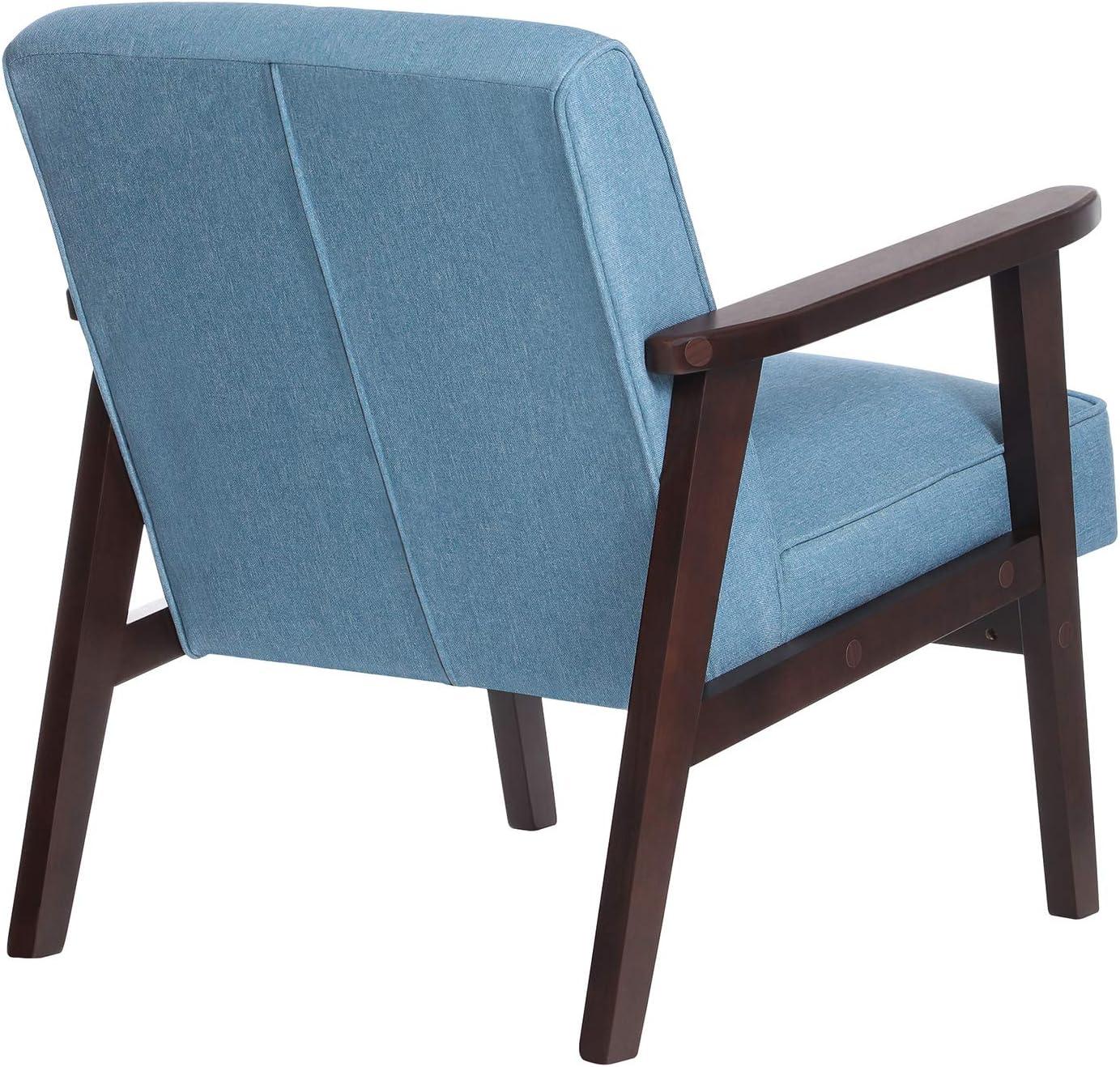 imageSONGMICS Accent Leisure Chair MidCentury Modern Arm Chair with Solid Wood Armrests and Legs 1Seat Cushioned Sofa for Living Room Bedroom Balcony Studio Classic Black ULAC001B01Lake Blue