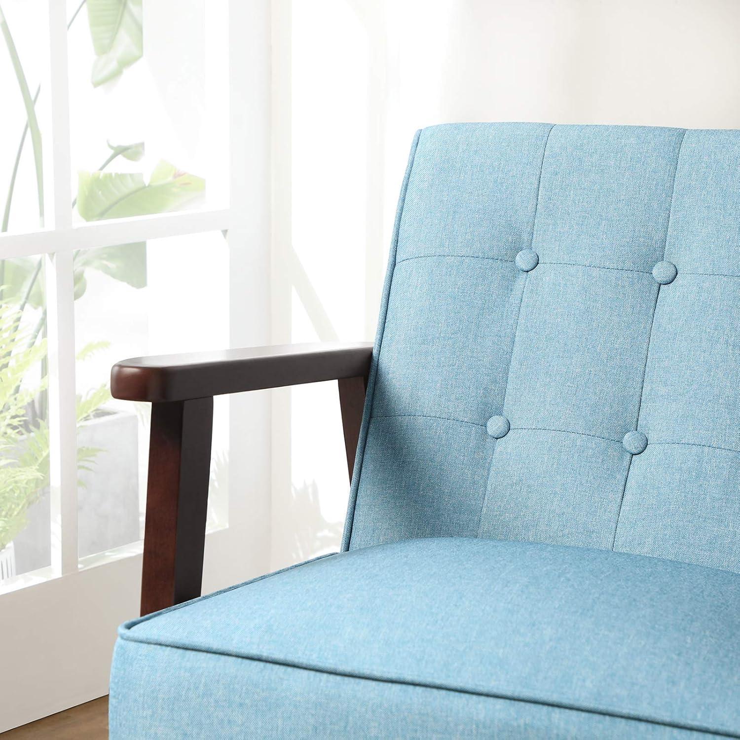 SONGMICS Accent Leisure Chair, Mid-Century Modern Arm Chair with Solid Wood Armrests and Legs, 1-Seat Cushioned Sofa for Living Room Bedroom Balcony Studio, Classic Black ULAC001B01(Lake Blue)