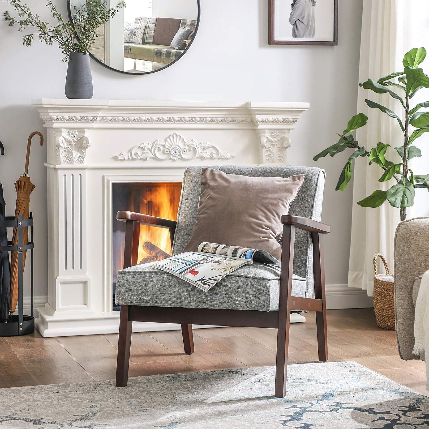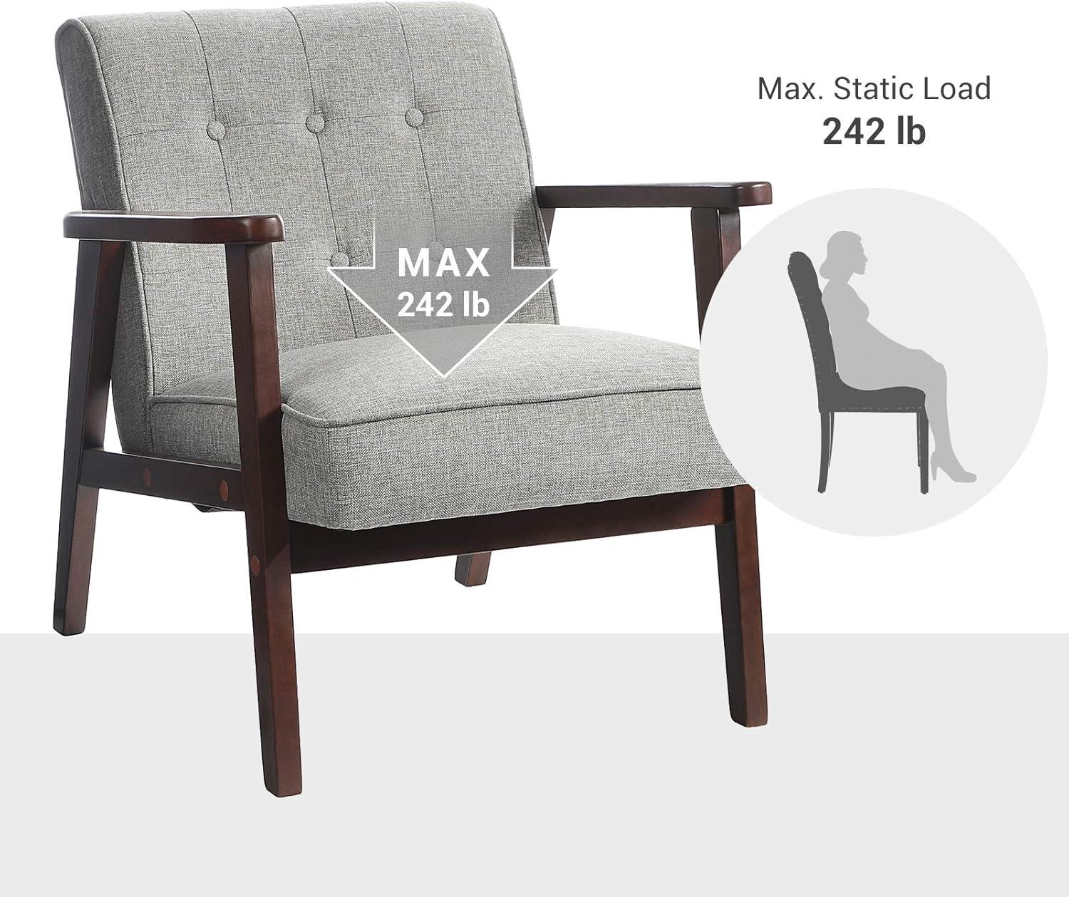 SONGMICS Accent Leisure Chair, Mid-Century Modern Arm Chair with Solid Wood Armrests and Legs, 1-Seat Cushioned Sofa for Living Room Bedroom Balcony Studio, Classic Black ULAC001B01(Light Gray)