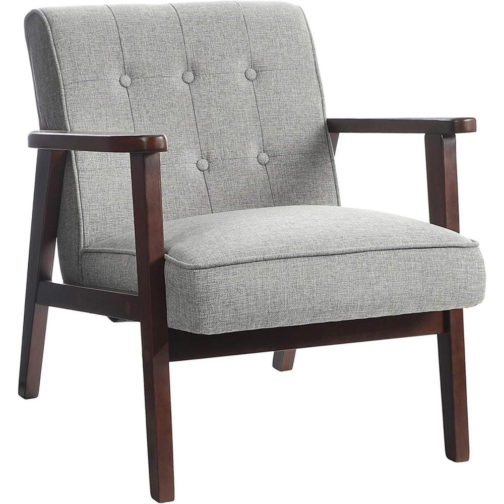 imageSONGMICS Accent Leisure Chair MidCentury Modern Arm Chair with Solid Wood Armrests and Legs 1Seat Cushioned Sofa for Living Room Bedroom Balcony Studio Classic Black ULAC001B01Light Gray