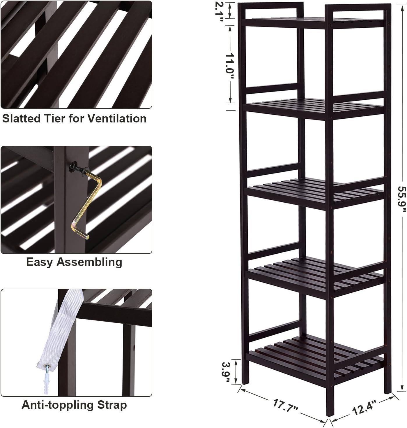 ADJUSTABLE & CUSTOMIZABLE: With 5 shelves but 9 heights available, it’s easy to adjust the height of each shelf to fit various items, big or small; also, the extra screw holes allow you to combine 2 of these storage racks or with similar racks from SONGMICS to customize your storage