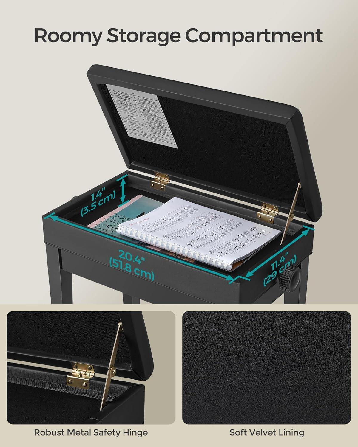 [Music Storage Compartment] Built-in storage compartment beneath the seat provides roomy space for your sheet music and accessories, folding lip support makes it convenient to open