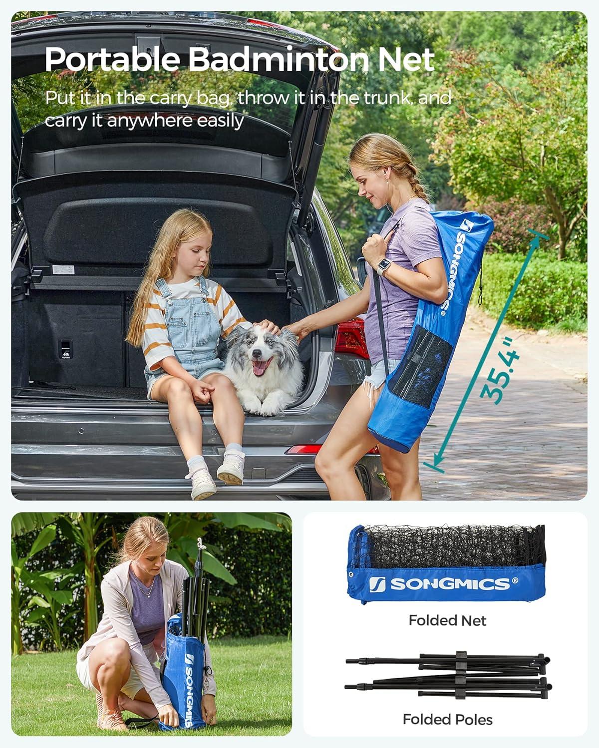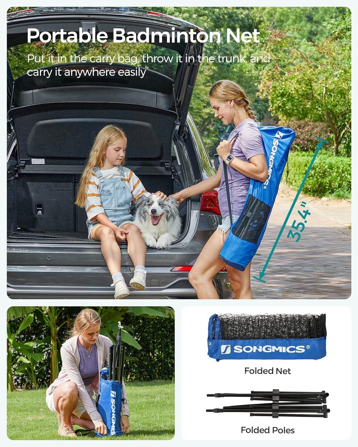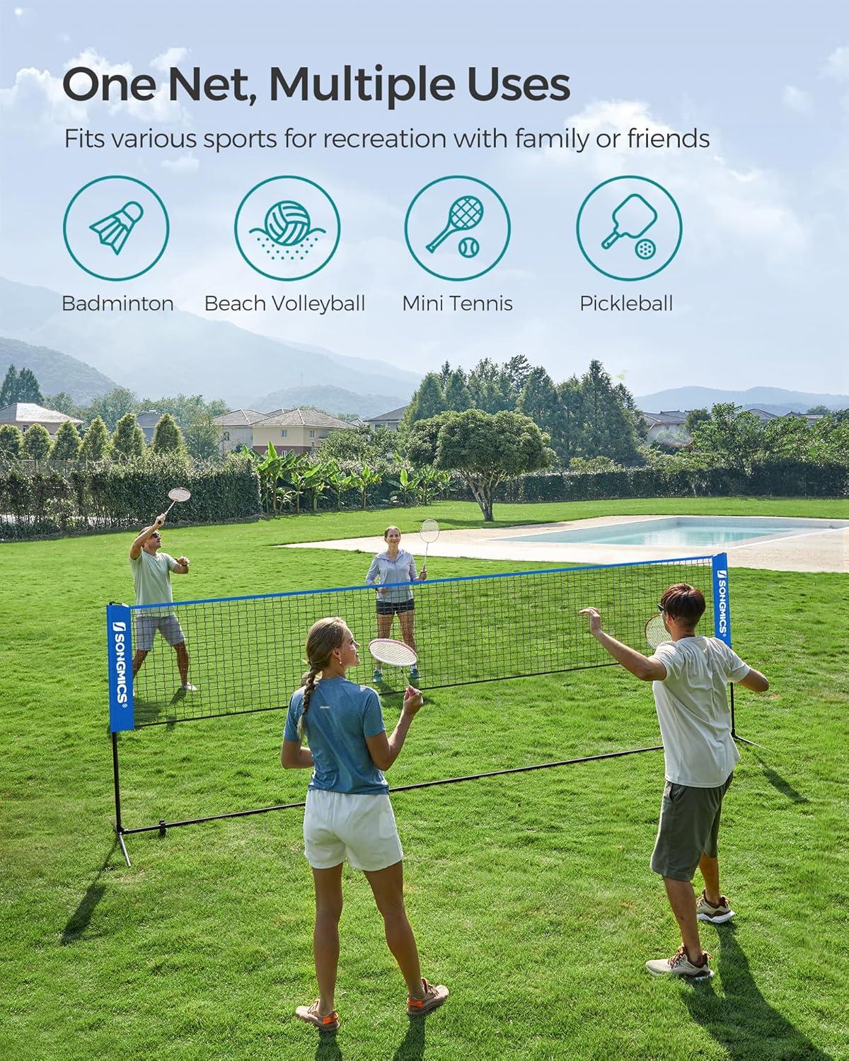SONGMICS Portable Badminton Volleyball Tennis Pickleball Net for Backyard Park