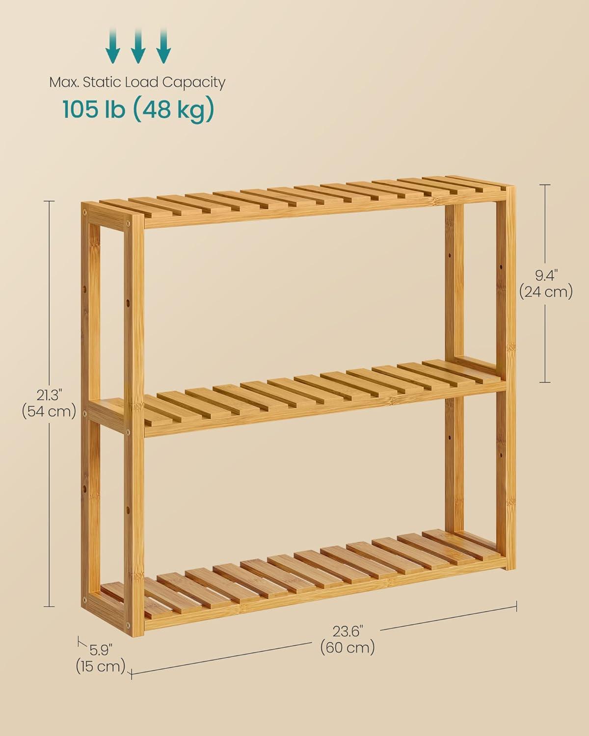 Be the first to review “SONGMICS Bamboo Bathroom Shelf, 3-Tier Adjustable Plants Rack, Wall-Mounted or Stand, in The Living Room, Balcony, Kitchen, 5.9 x 23.6 x 21.3 Inches, Natural and Cloud White UBCB13WN(Natural)”