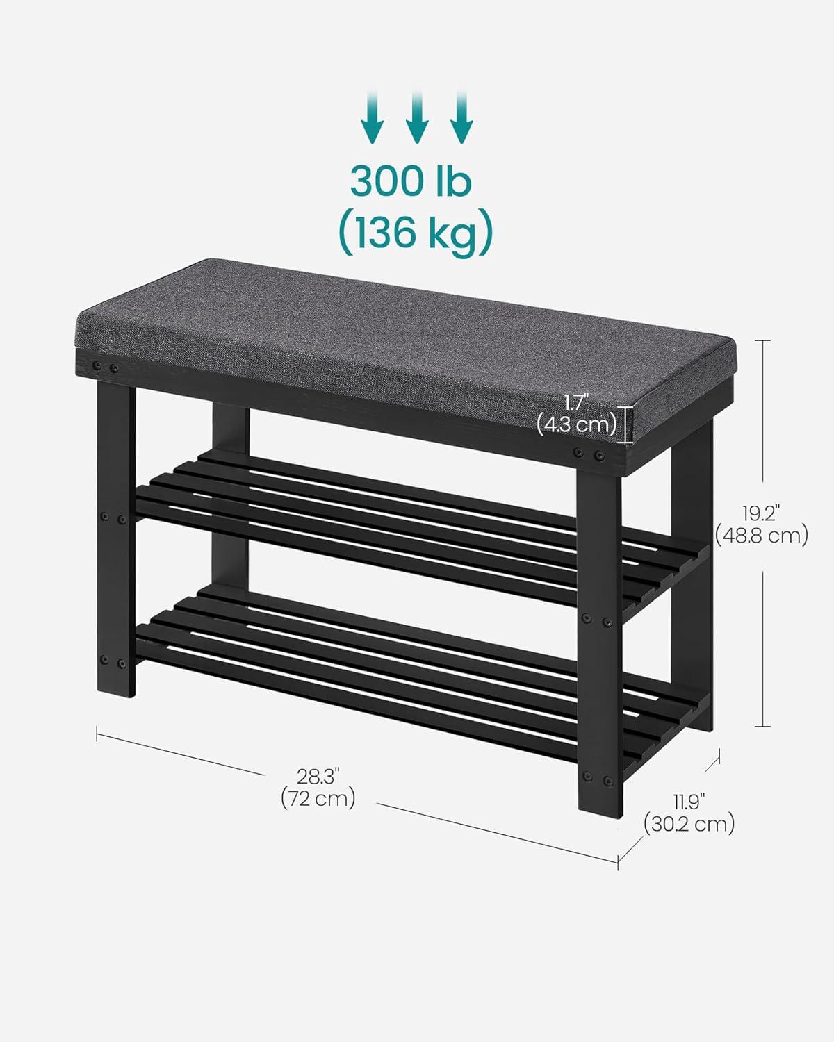 It Has the Strength: Connected by 2-in-1 screws, this bamboo bench offers great stability and a high load capacity (max. load for bench seat: 300 lb; max. load for each shelf: 22 lb)