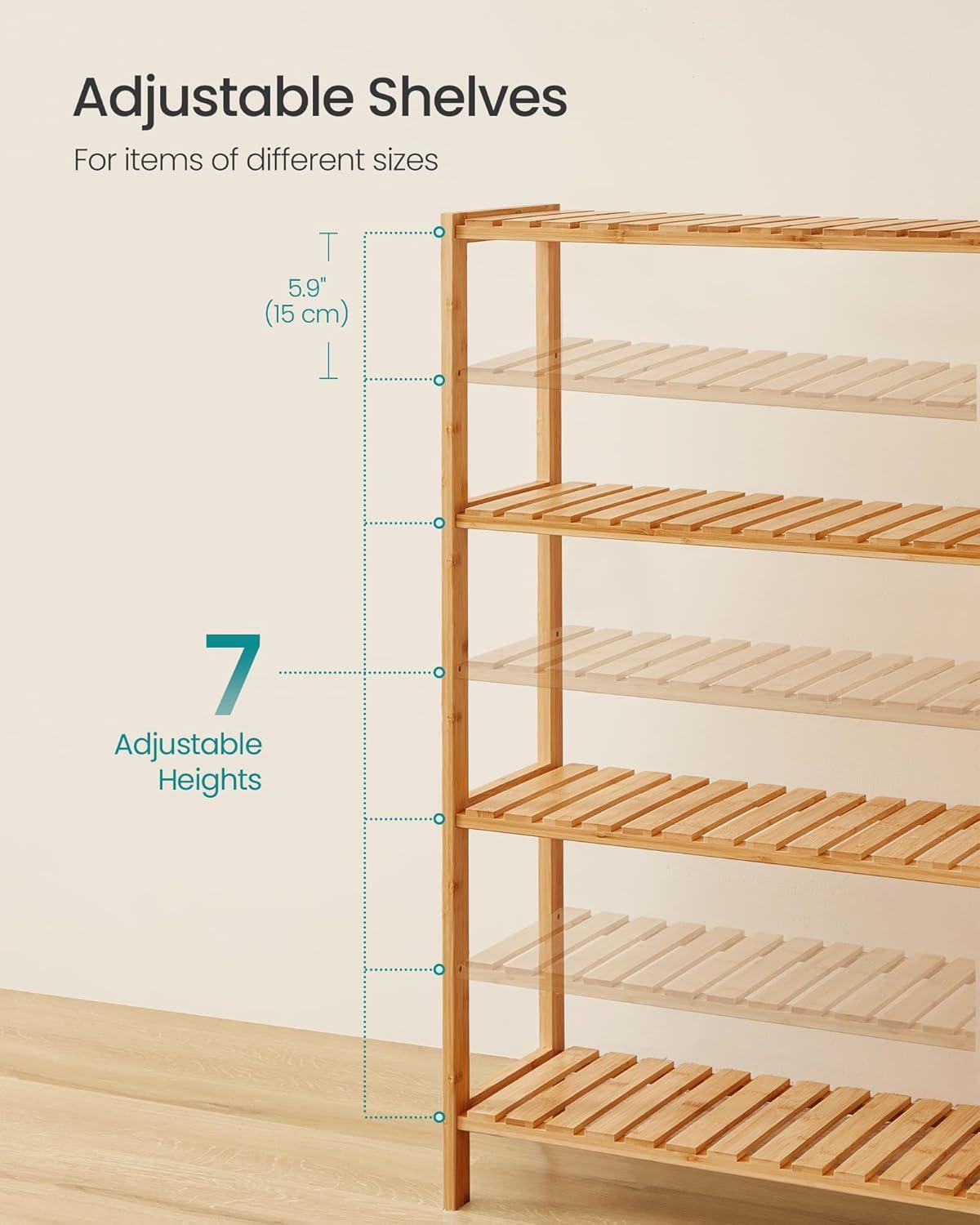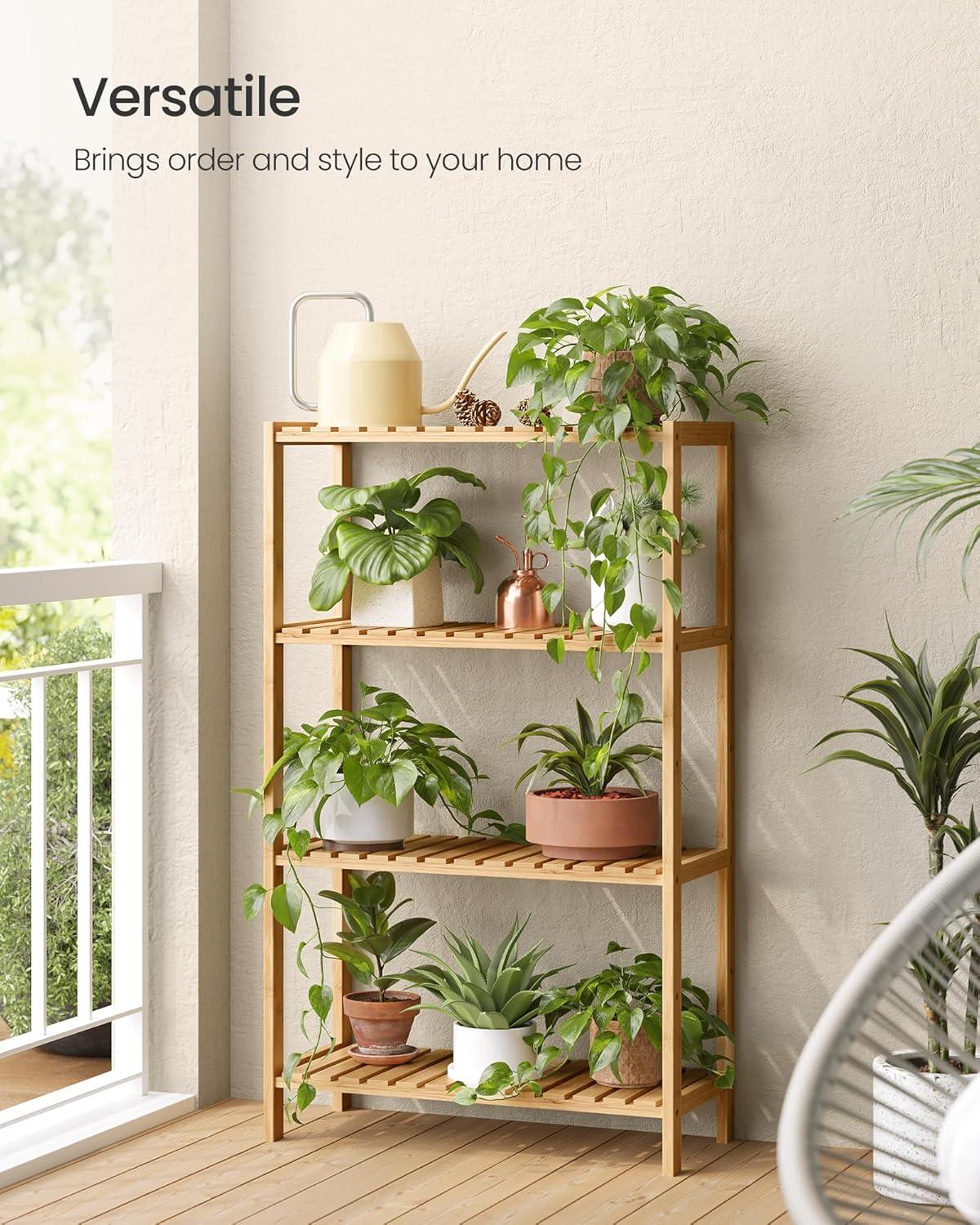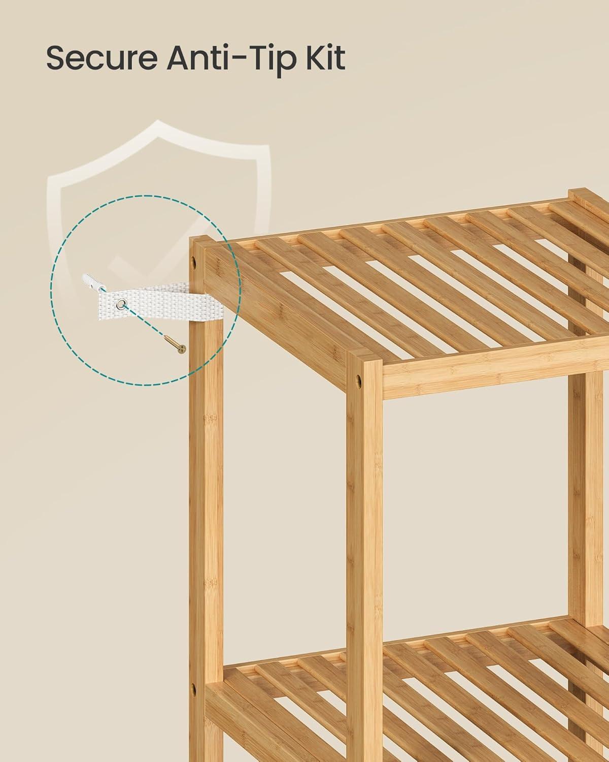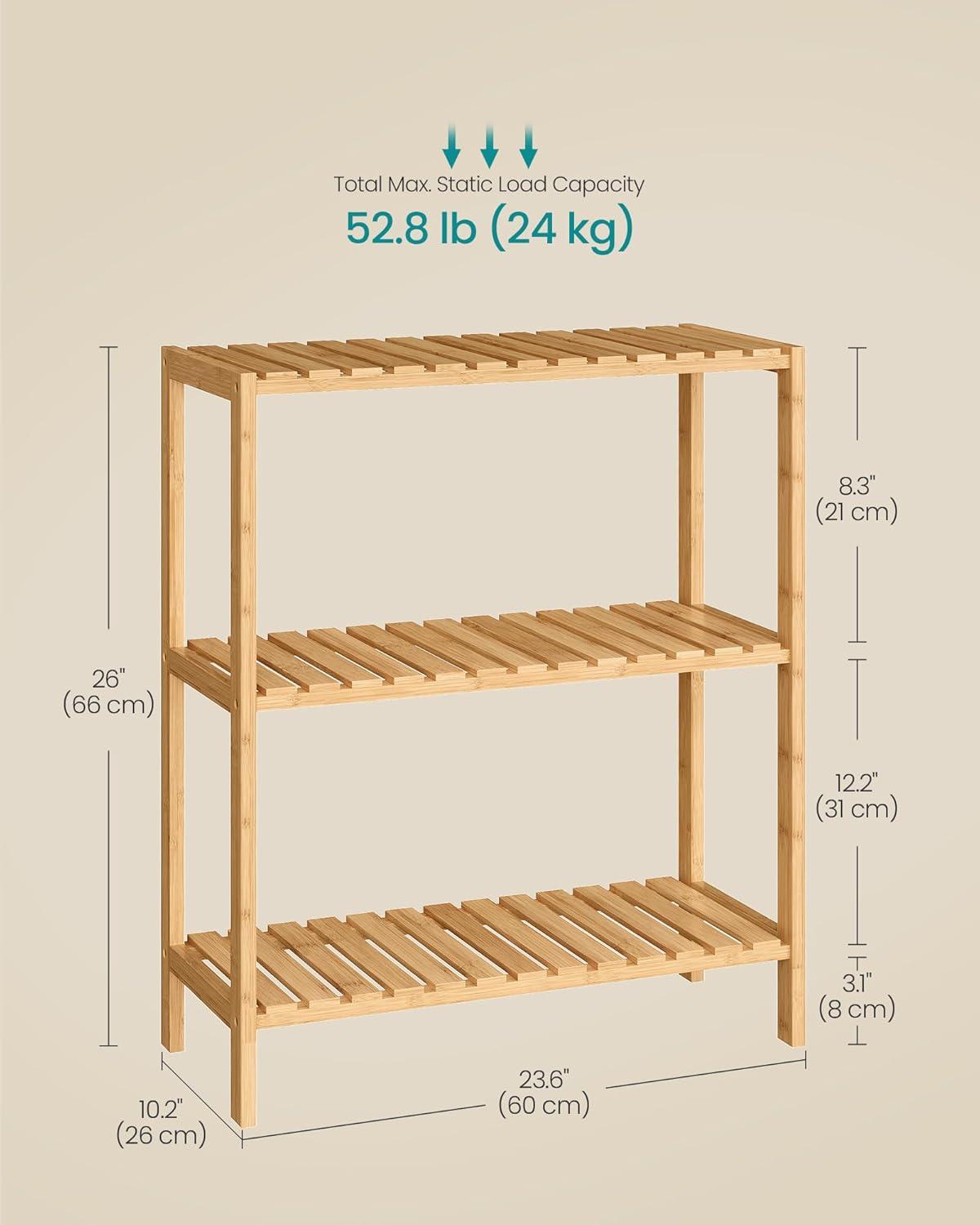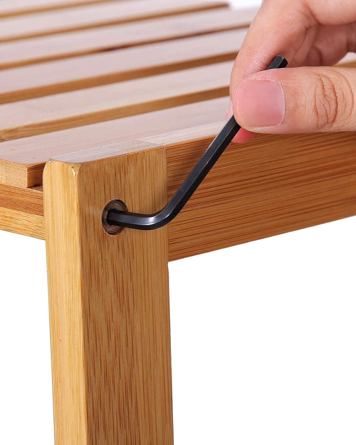 Durable Bamboo: Crafted from quality bamboo, this rack boasts impressive stability and strength (each shelf holds up to 22 lb). The slatted design allows water to pass through, preventing warping and ensuring a long lifespan
