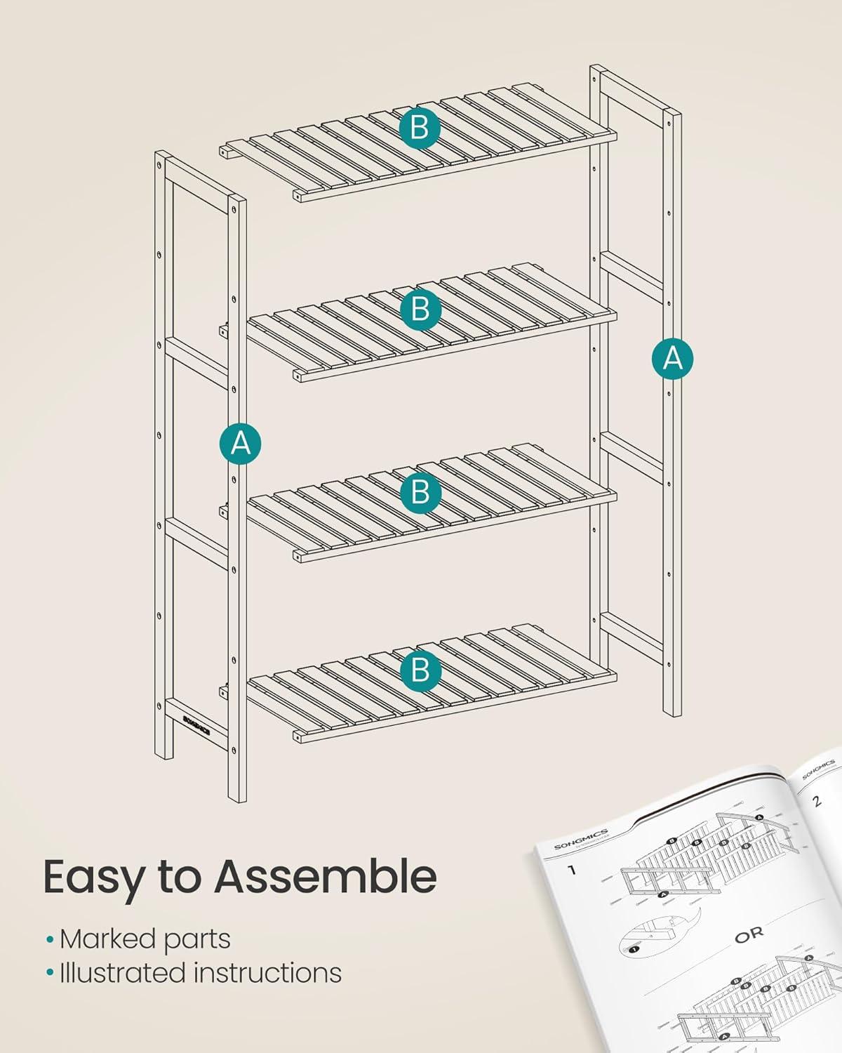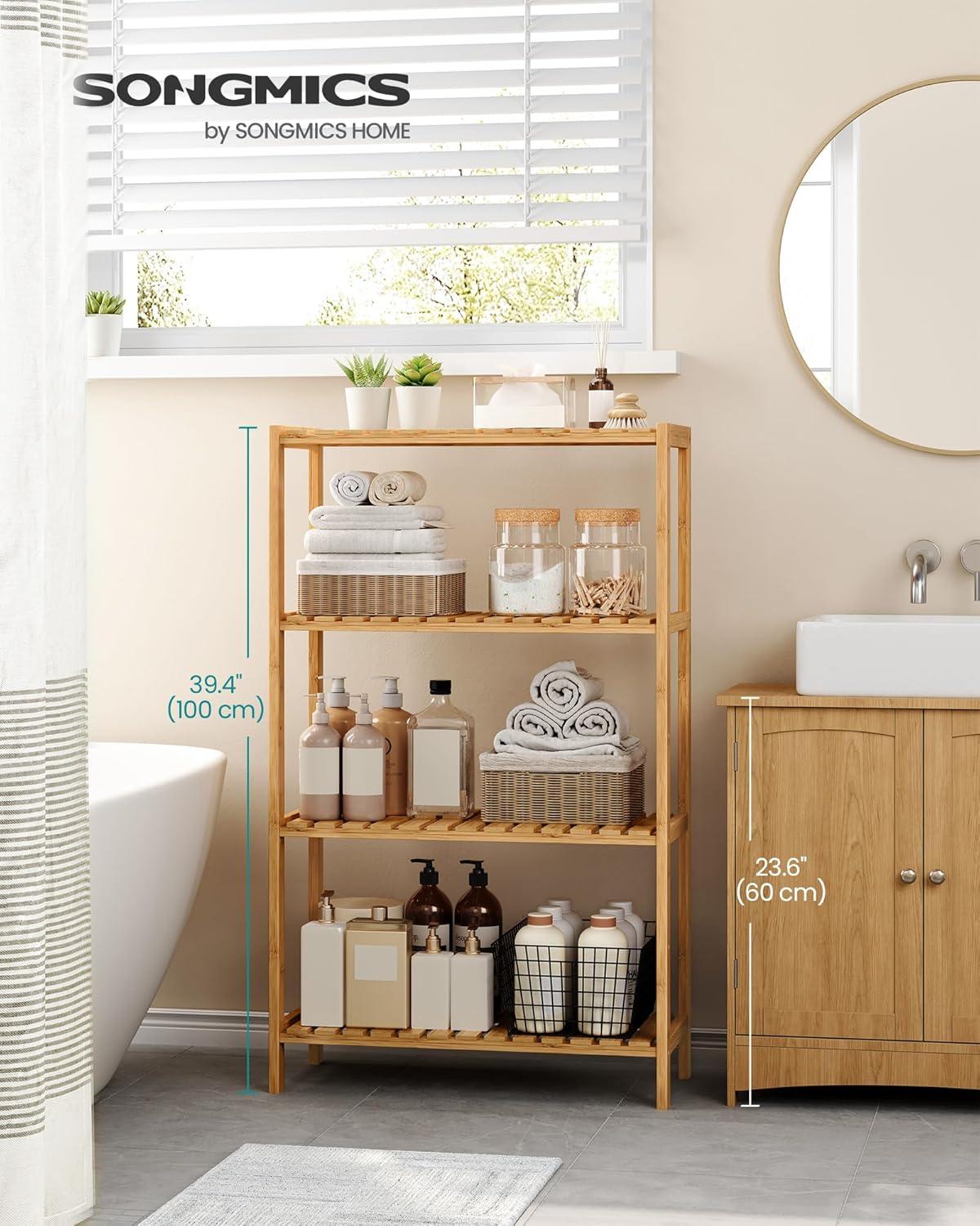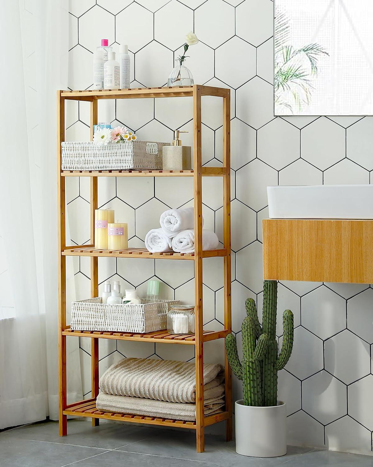 Space-Saving: Measuring 13″D x 13″W x 57.5″H, this bamboo shelf occupies a small footprint yet offers ample vertical storage, making it the perfect choice for small spaces