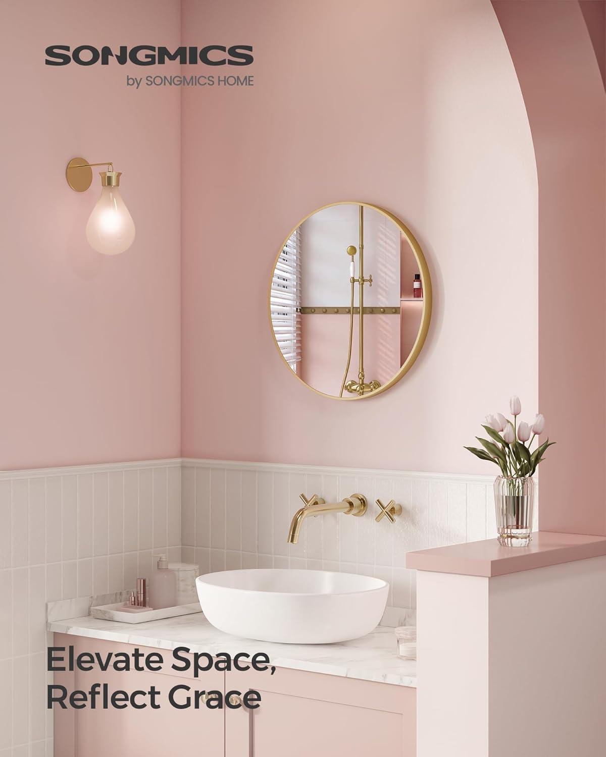 SONGMICS Bathroom Round Mirror for Wall, 24 Inches Black Circle Mirror,Metal Frame,for Bathroom Over Sink, Living Room, Bedroom, Entryway, Hallway, Ink Black ULWM102B01(Ink Metallic Gold)