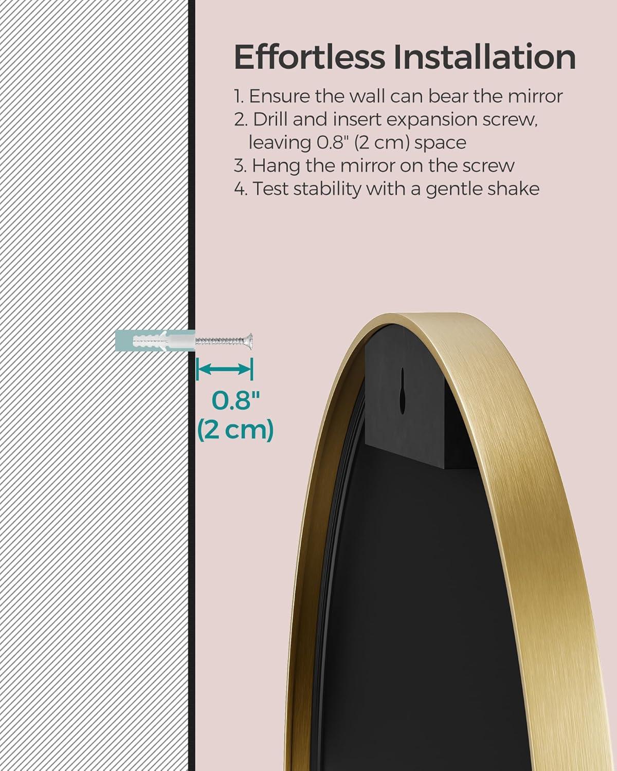 [Installation? A Breeze] All you need is to pop in a single expansion screw, and this elegant circle mirror will be gracing your wall. But remember, don't skip the instructions. We want your mirror to be as safe as it is stunning!
