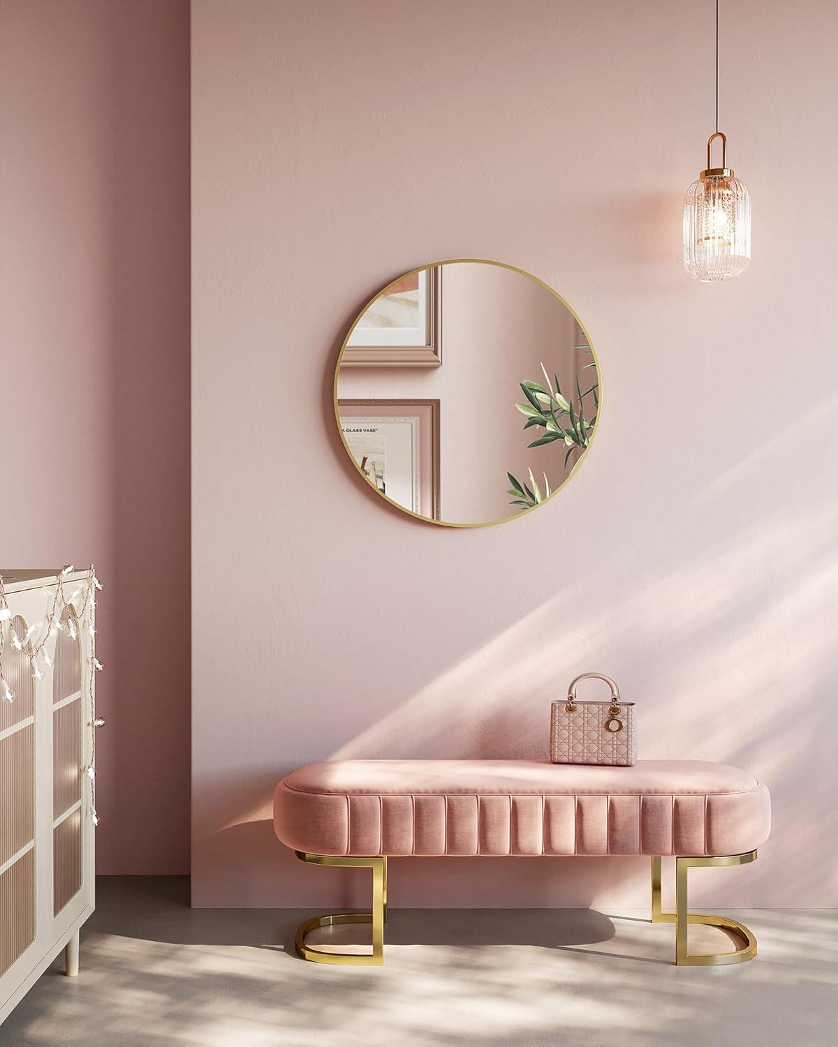 [Elevate Your Space] With its classic round design and sleek black frame, this large decorative mirror adds a touch of charm to any room, from bedrooms to bathrooms, hallways to vanity tables