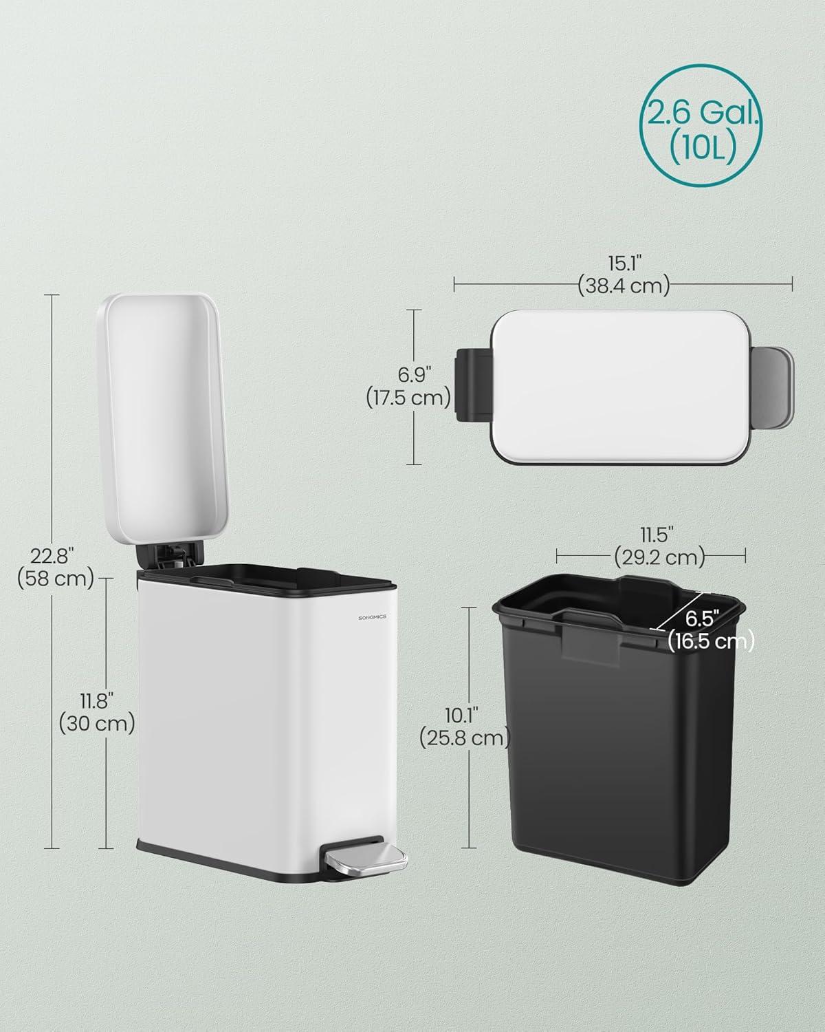 [Soft-Close & Stay-Open] This trash bin features a lid that closes quietly and gently without slamming shut. Additionally, you can keep the lid open for easy waste disposal when needed