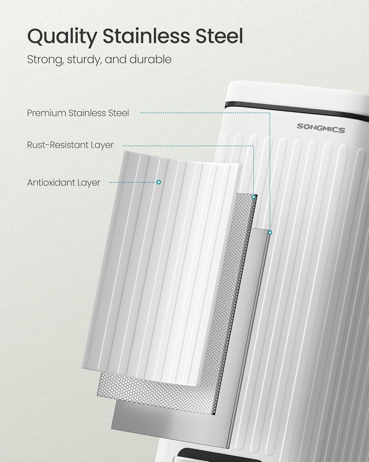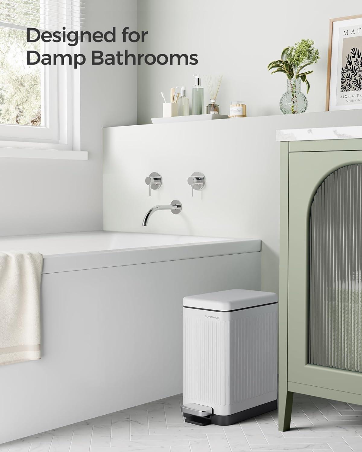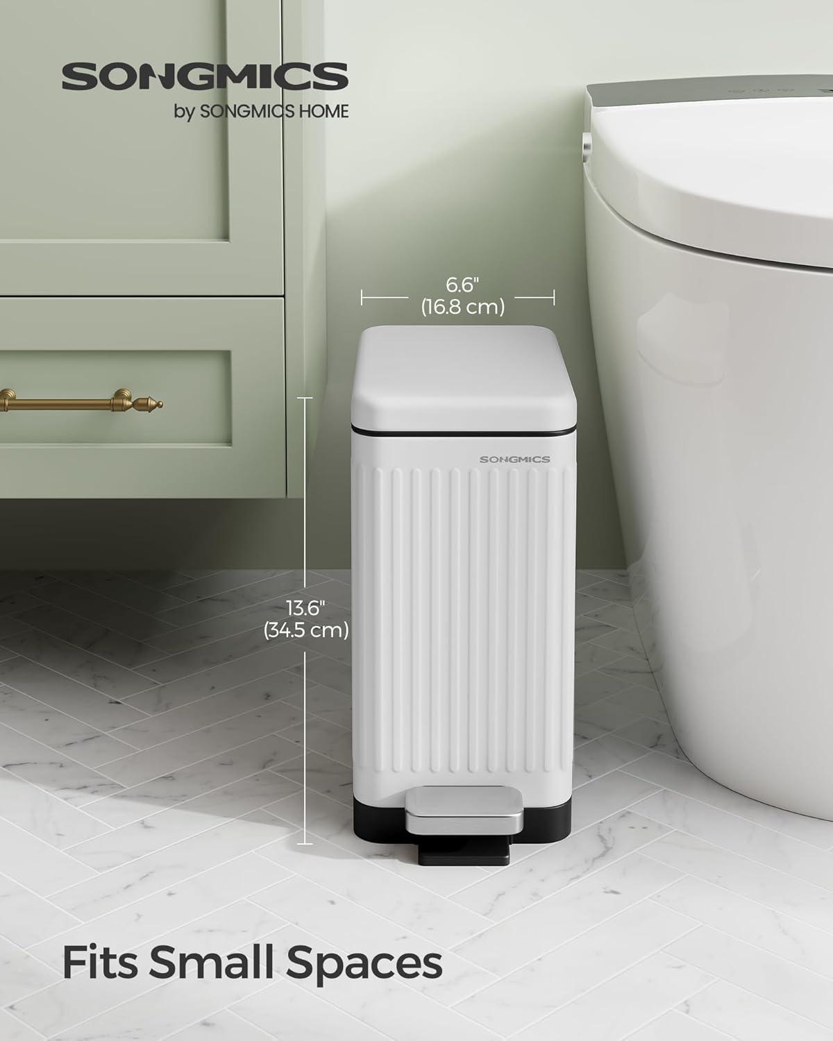 Be the first to review “SONGMICS Bathroom Trash Can, 1.6-Gallon (6 L) Trash Bin with Lid, Slim for Small Spaces, Stainless Steel Garbage Can, Soft Close, White ULTB563W02(White)”
