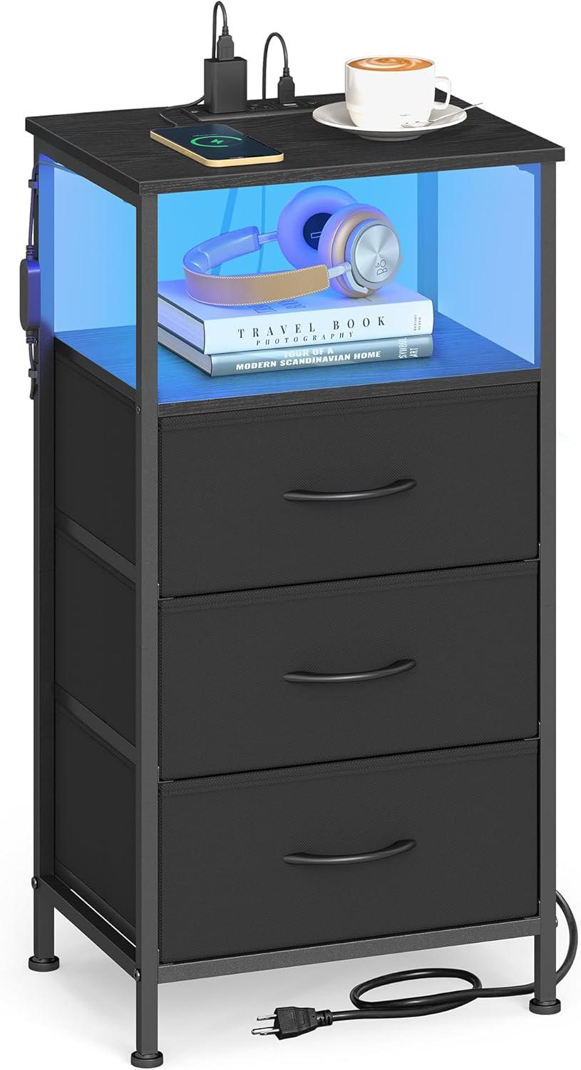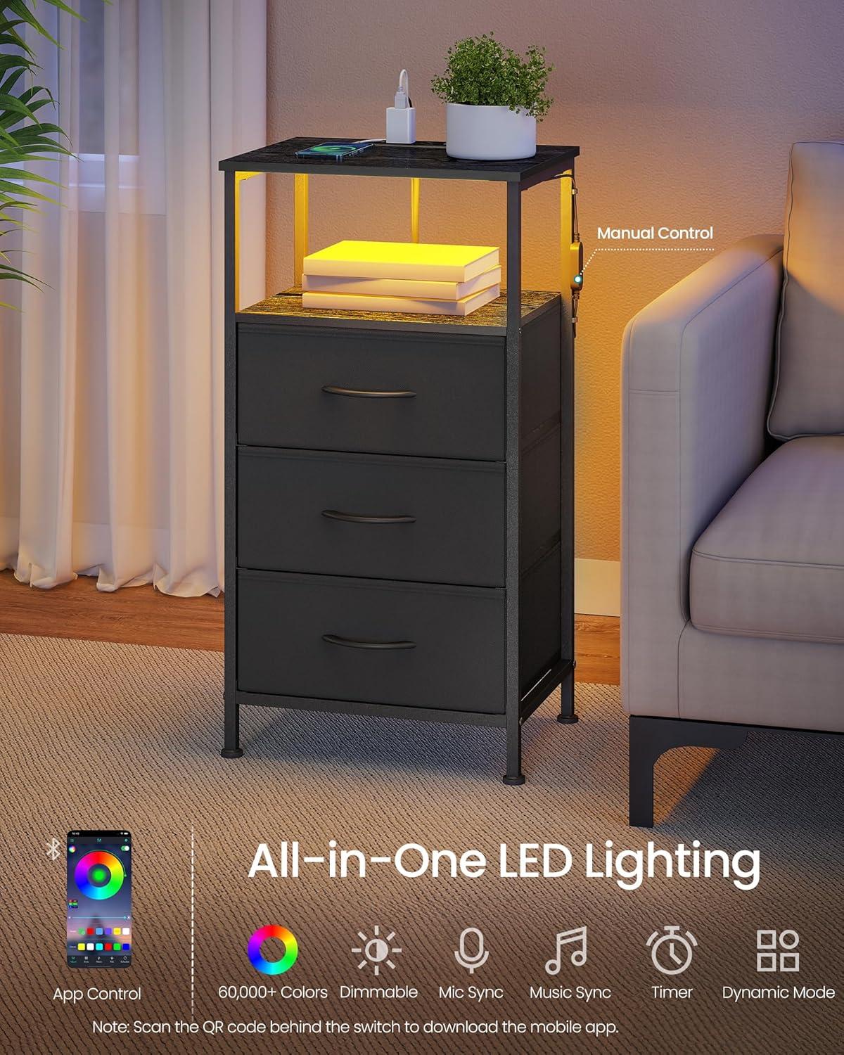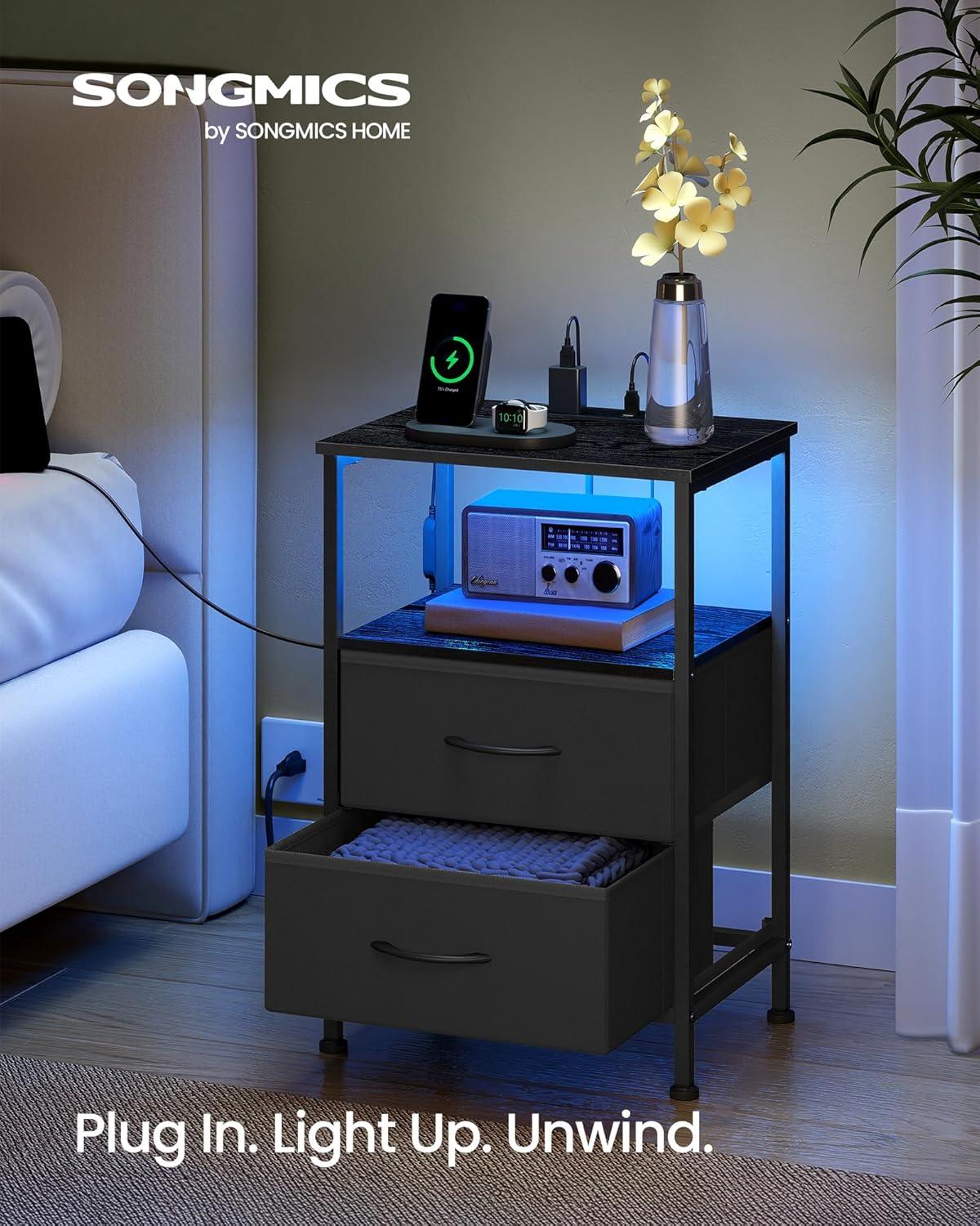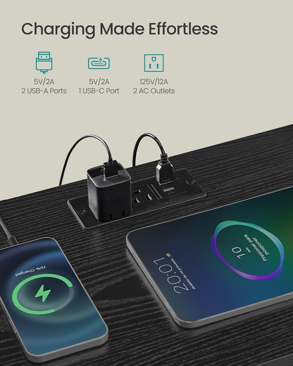 Convenient Charging: This nightstand features a built-in charging station with 2 AC outlets, 2 USB-A ports, and 1 USB-C port, keeping all your devices powered and within easy reach for maximum convenience during relaxing evenings