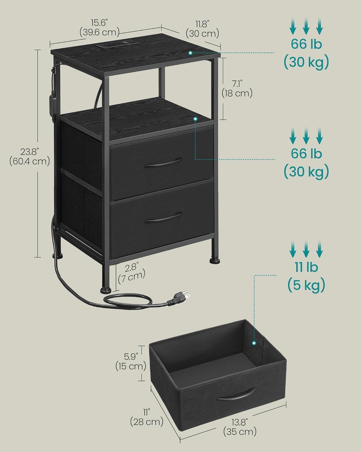 Sturdy & Safe: Crafted from particleboard and steel, this night table supports up to 66 lb on the open shelf and 11 lb per drawer. The included anti-tip kit secures it to the wall for extra safety